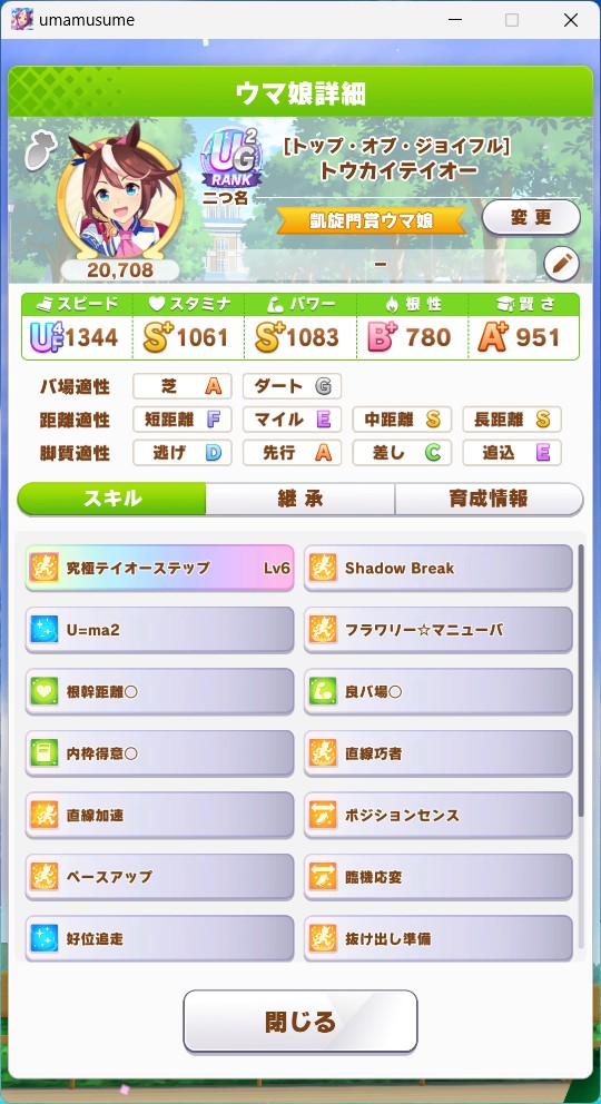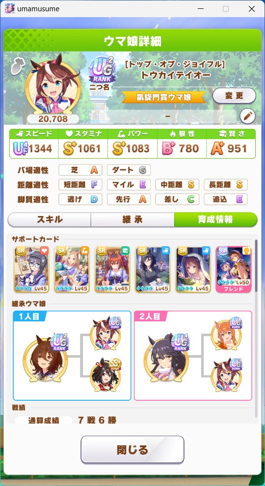 もはやスレチで申し訳ないのですがいった手前やらないといけないかと思い一応自前SRカード&自前因子(フレンドはメイちゃん)でUG作ってきました