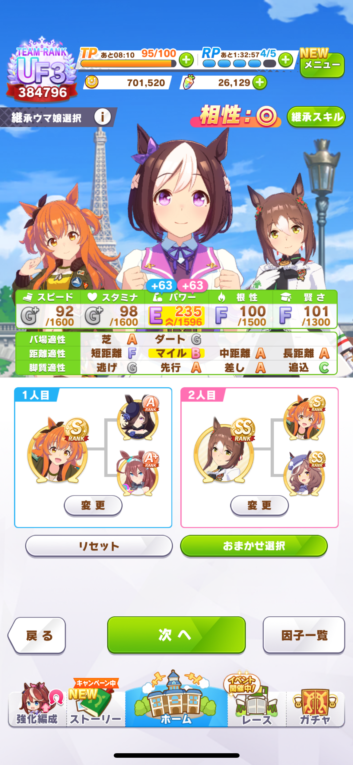 こんな恵まれたサポカ編成でUF2が限界です( 。∀ ゚)