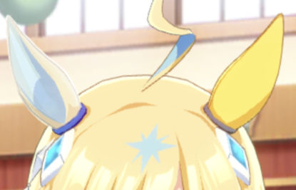 ネオユニヴァースの勝負服の耳カバーの右耳はつけていないのではなく、レース生地で透けている。