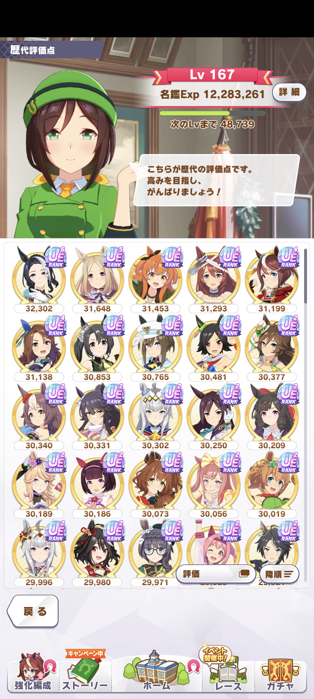 衣装違いでも別キャラとしてカウントされるので、最近育てていないウマ娘がいるならとりあえず最新シナリオで評価点を更新しておくと無償ジュエルを回収できて少しオトク