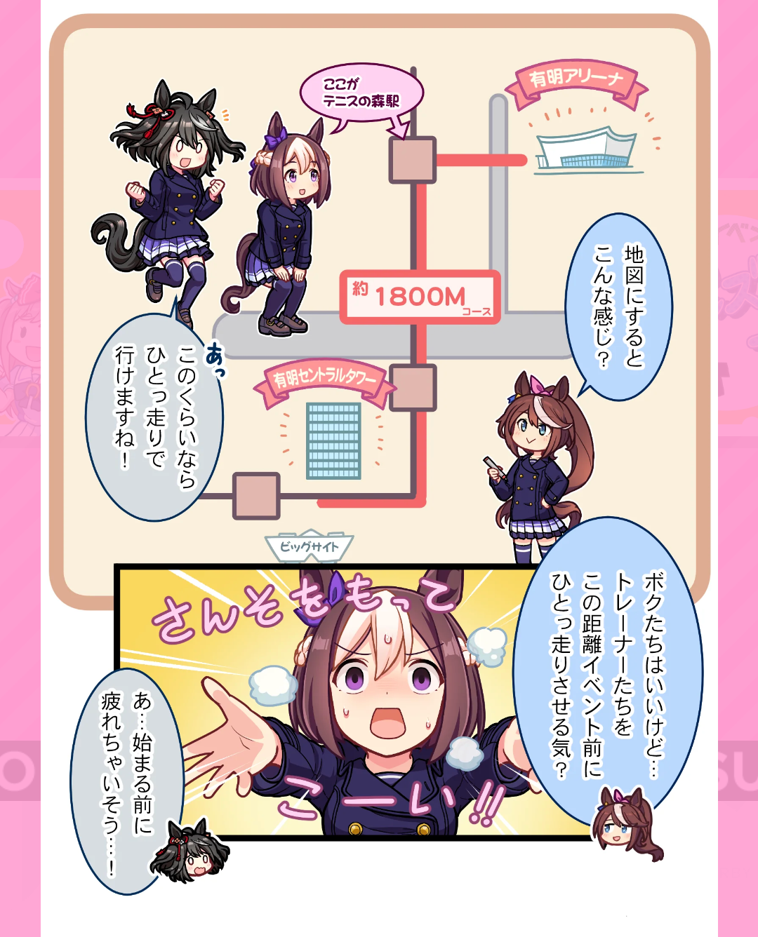 東京ビックサイト駅と地図にするとこんな感じのところのテイオーの表情すき