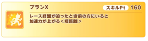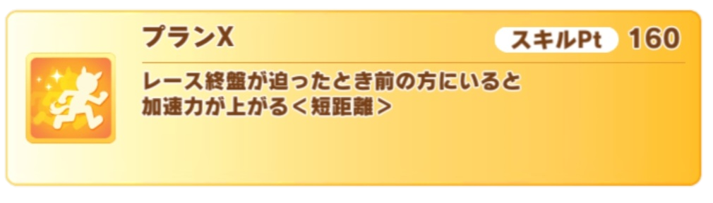 みんなプランXの強さに気づいて、かわいい私だけの愛バちゃんたちの所持スキルにプランXをブチ込むのさ!!フフフフフフ…Xだ!X…X……エッッッ!!(バシィ!)やめないか!!!