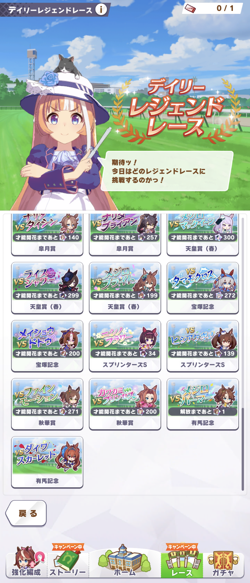 なんで俺はタイキとフラワー解放させずにカレンチャンとビワネキ解放させようとしてるんだろ