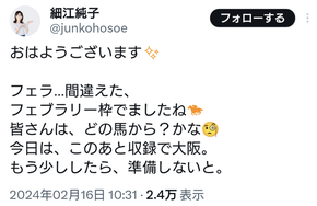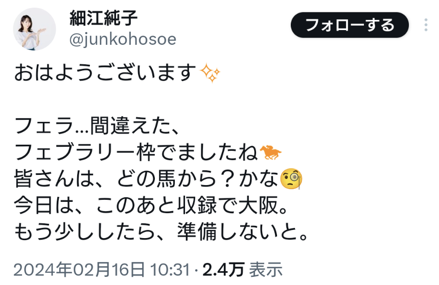 ウマッターで細江純子にセクハラリプされたらウマ娘はどう対処するんだろう