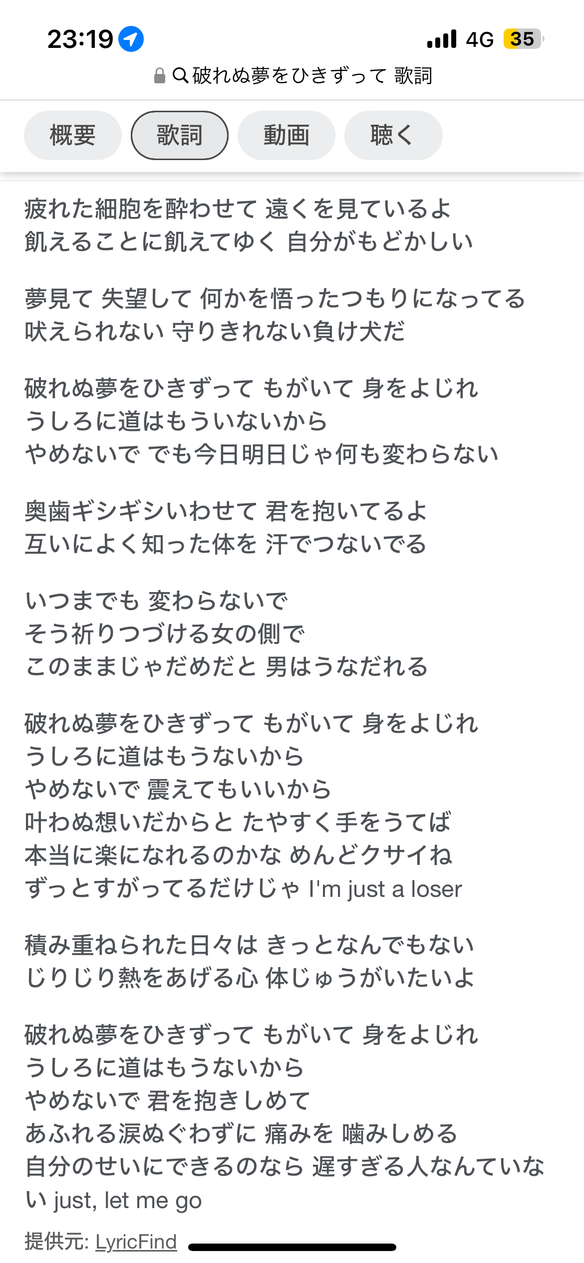 破れぬ夢を引きずっての歌詞がむっちゃマッチするんだよなぁ……