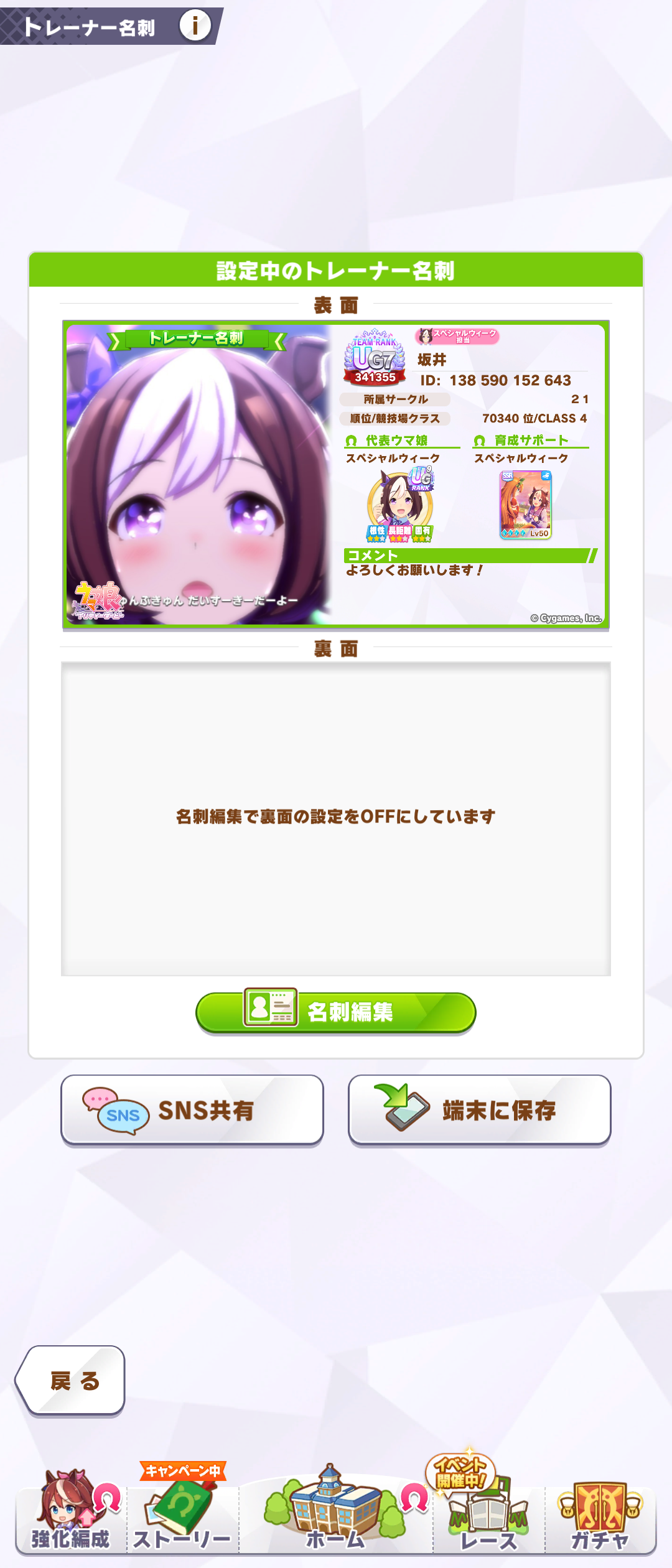 ギャルさんぽで初日からやらかした人の名刺です…トレーナー名とIDはおっぴろげにしておきます…(戒め)