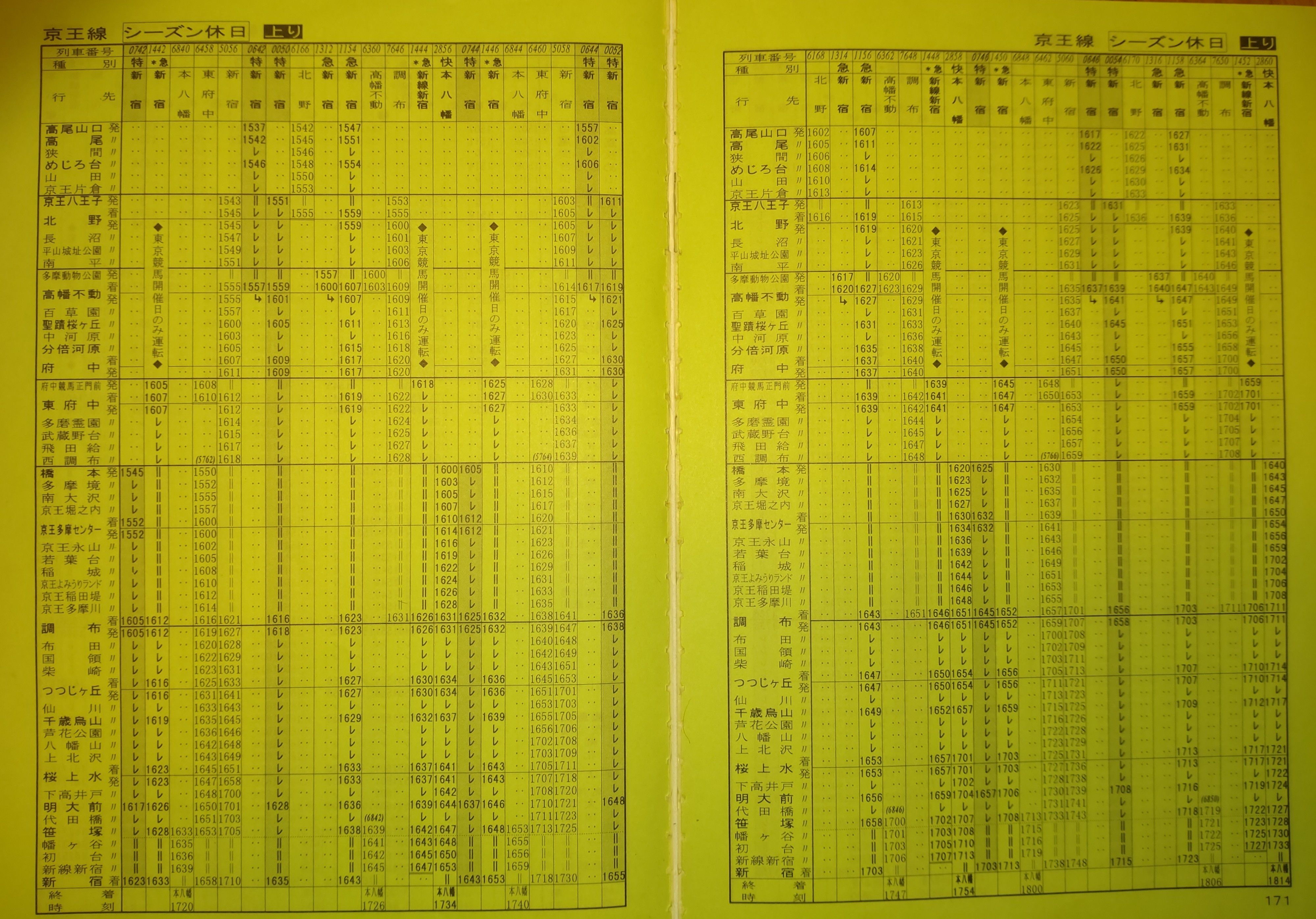 97年頃の京王線休日上り午後の時刻表