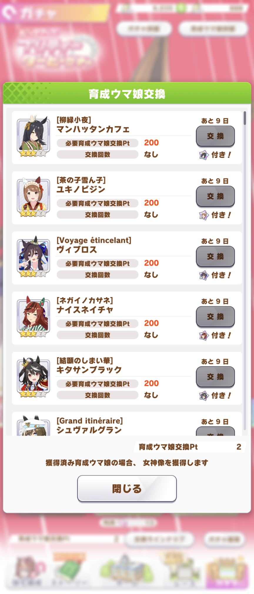 ピックアップはどうすっかな……シチーとカフェは欲しい気がするけど一番欲しいのはアースなんだよな……