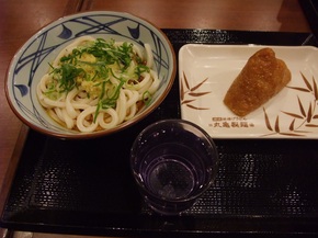丸亀製麺 JR橋本駅店「冷やしぶっかけうどん(390円)」と「いなり(140円)」