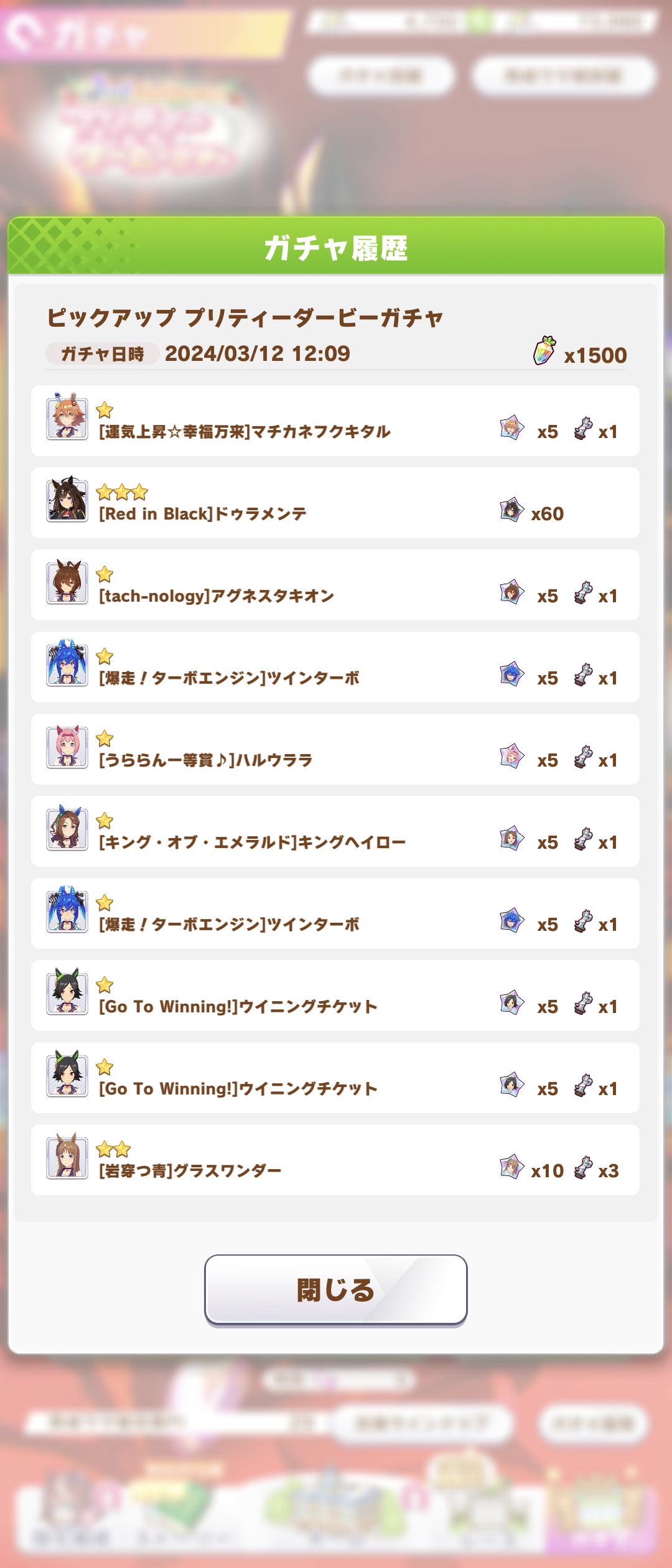 直前ピックアップウマ娘引き