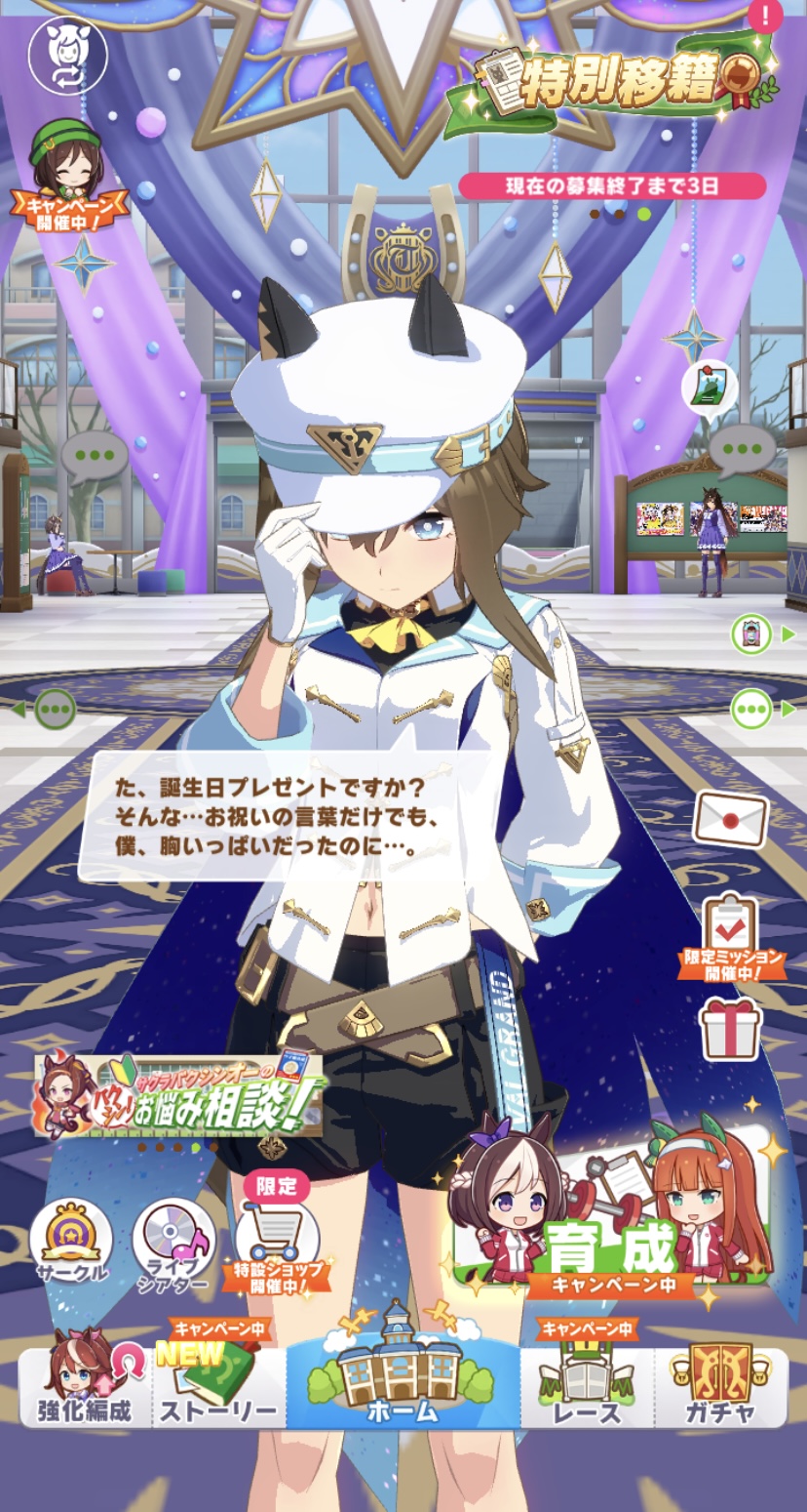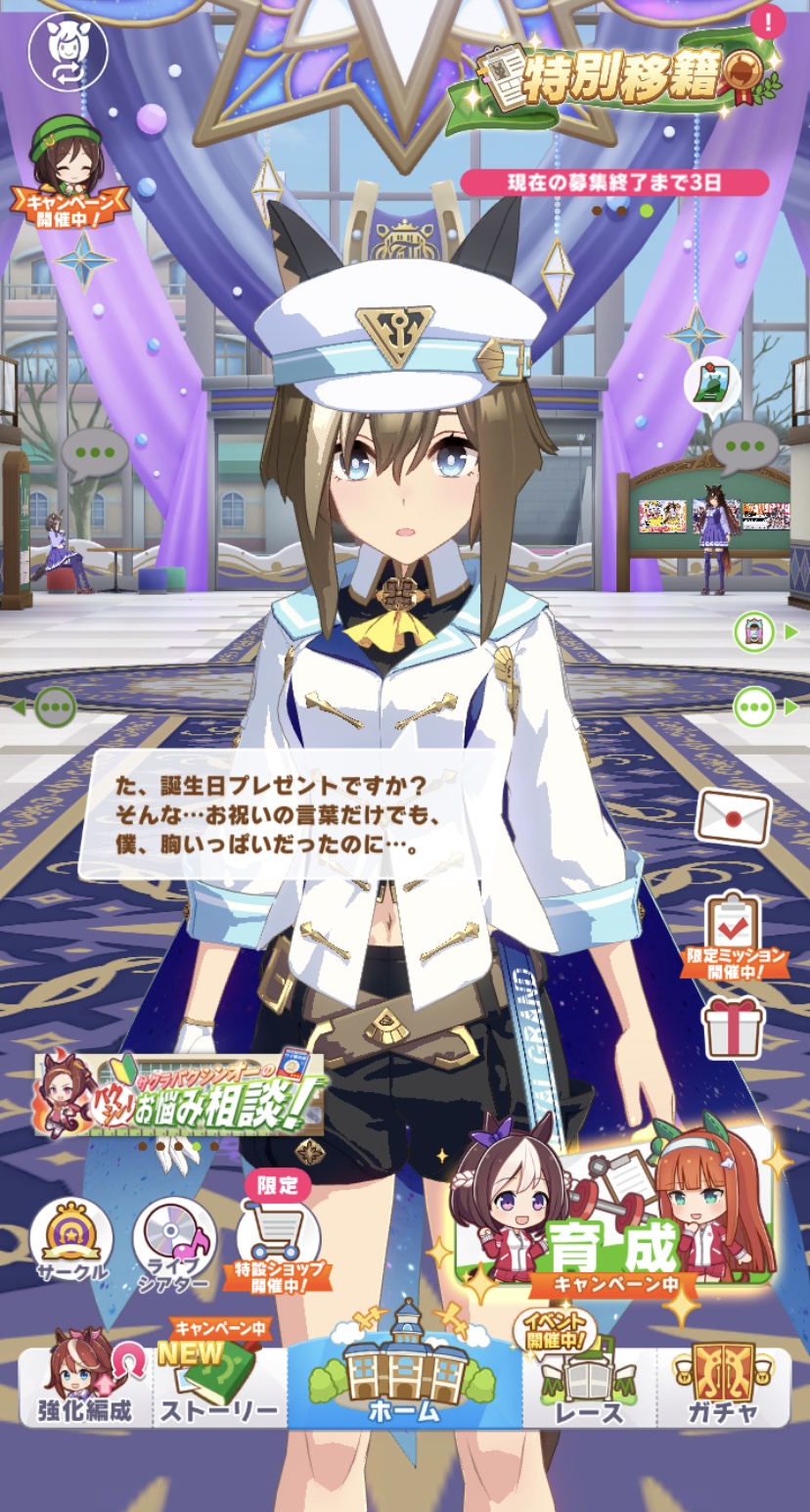 ホーム画面でトレーナーに祝われた反応も可愛かった