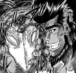 頭を掴まれて持ち上げられている、