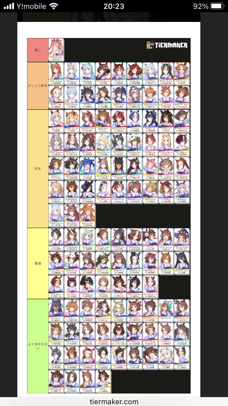 好きなウマ娘のTier表貼ってワイワイ言うスレ