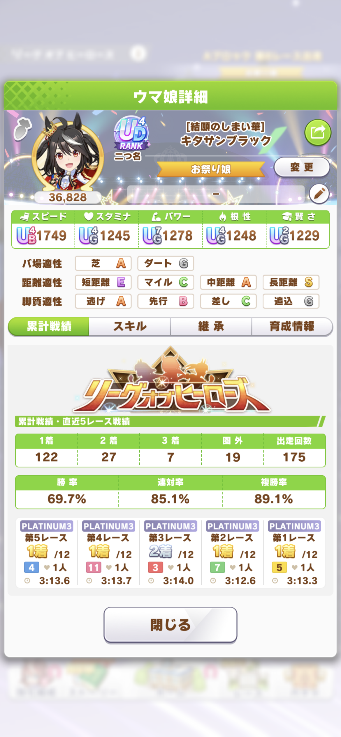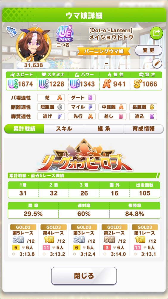 元々狂った性能なのに加えてクラシック春秋3冠獲ることでボーナス分だけでステ200以上にSP150以上、有用ヒントも貰えるとのことで