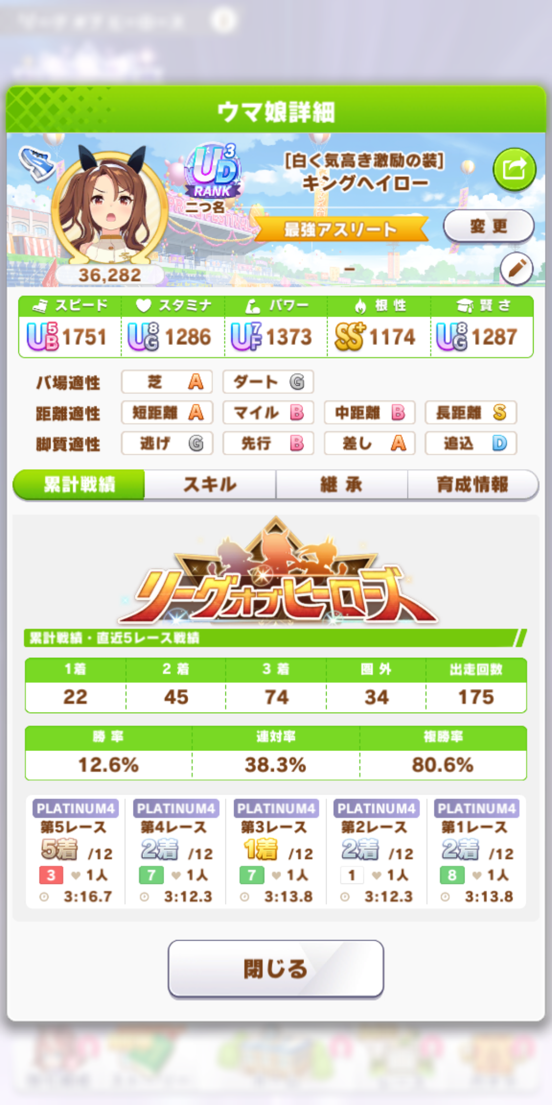 最推しとして、どうしても大逃げスズカさんを出したくてな……最大の敵は自チームのローレルだったけど