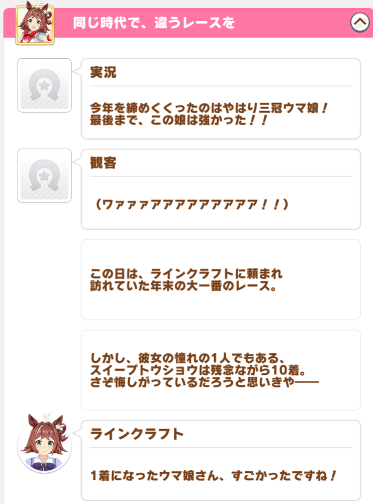 序盤は王道主人公かな?と思ったら割とデジたん味のあるティアラ路線オタクっぷりをぶっ込んできて、中盤から先輩方を越える熱血……からの突然の未来視。