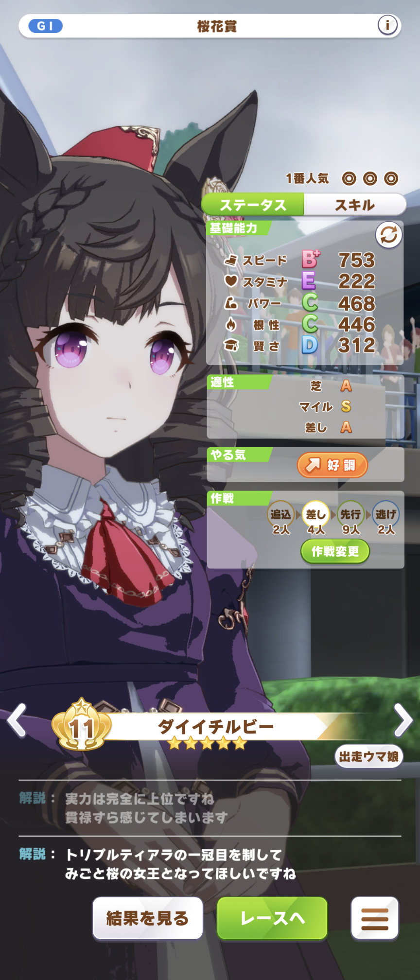 まず新入生は6月後半にメイクデビュー戦が行われるわ。 メイクデビュー戦は芝ダートの短距離(1200、1300、1400)、マイル(1500,1600、1800)、中距離(2000芝のみ)で行われるわ。