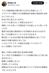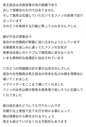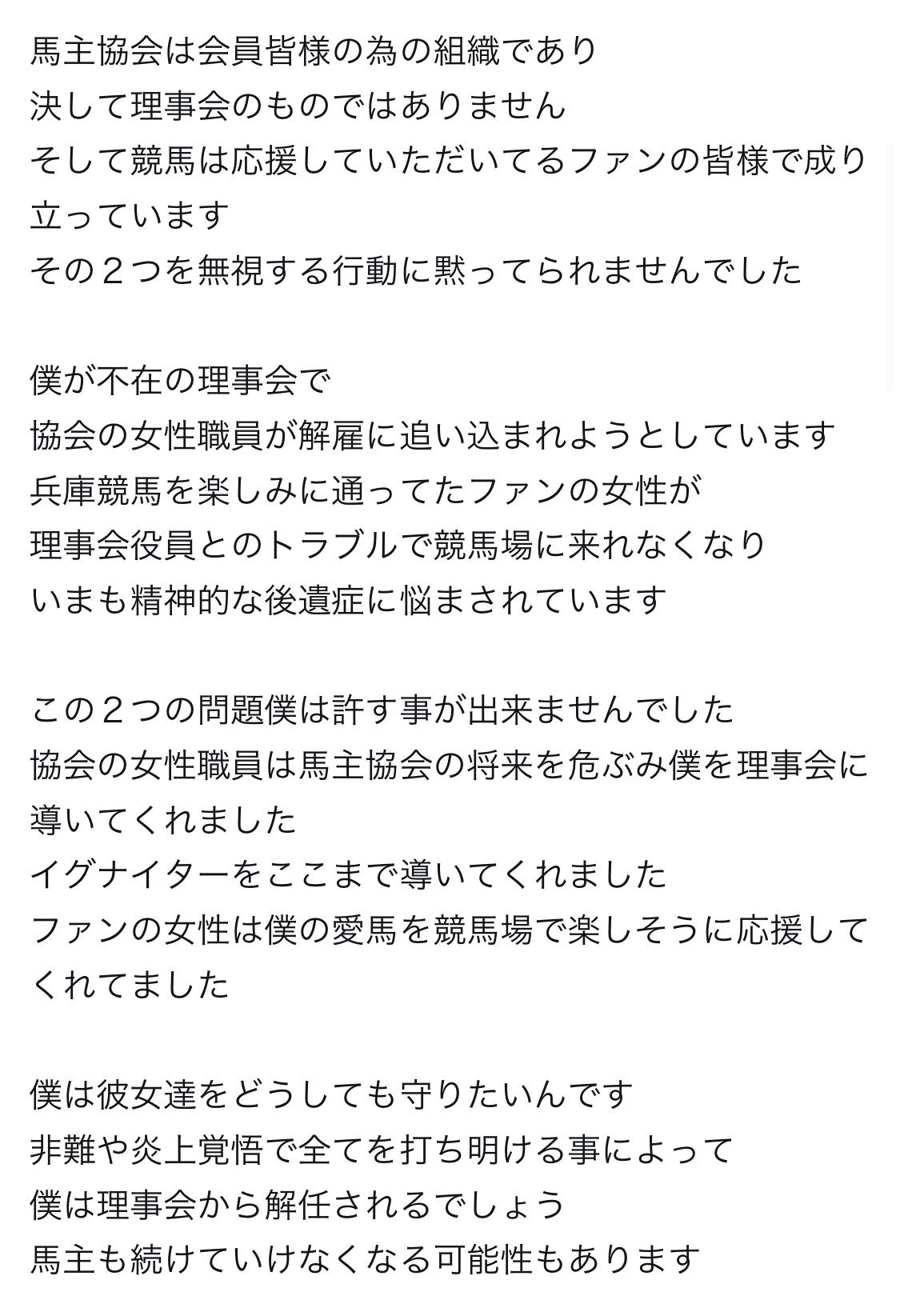 あくまでも他所で聞きかじった話だから話半分で聞いておいて欲しいんだがどうやら馬主総会的な会合で本人不在の中勝手に役職降ろされたらしいとか何とか
