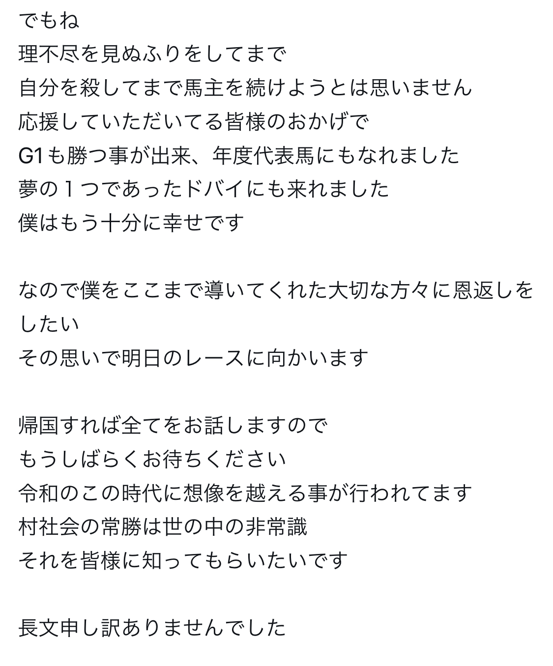 (イグナイターがドバイGS勝ったらその話題で覆い隠せねぇかな)とでも思ってたんかね