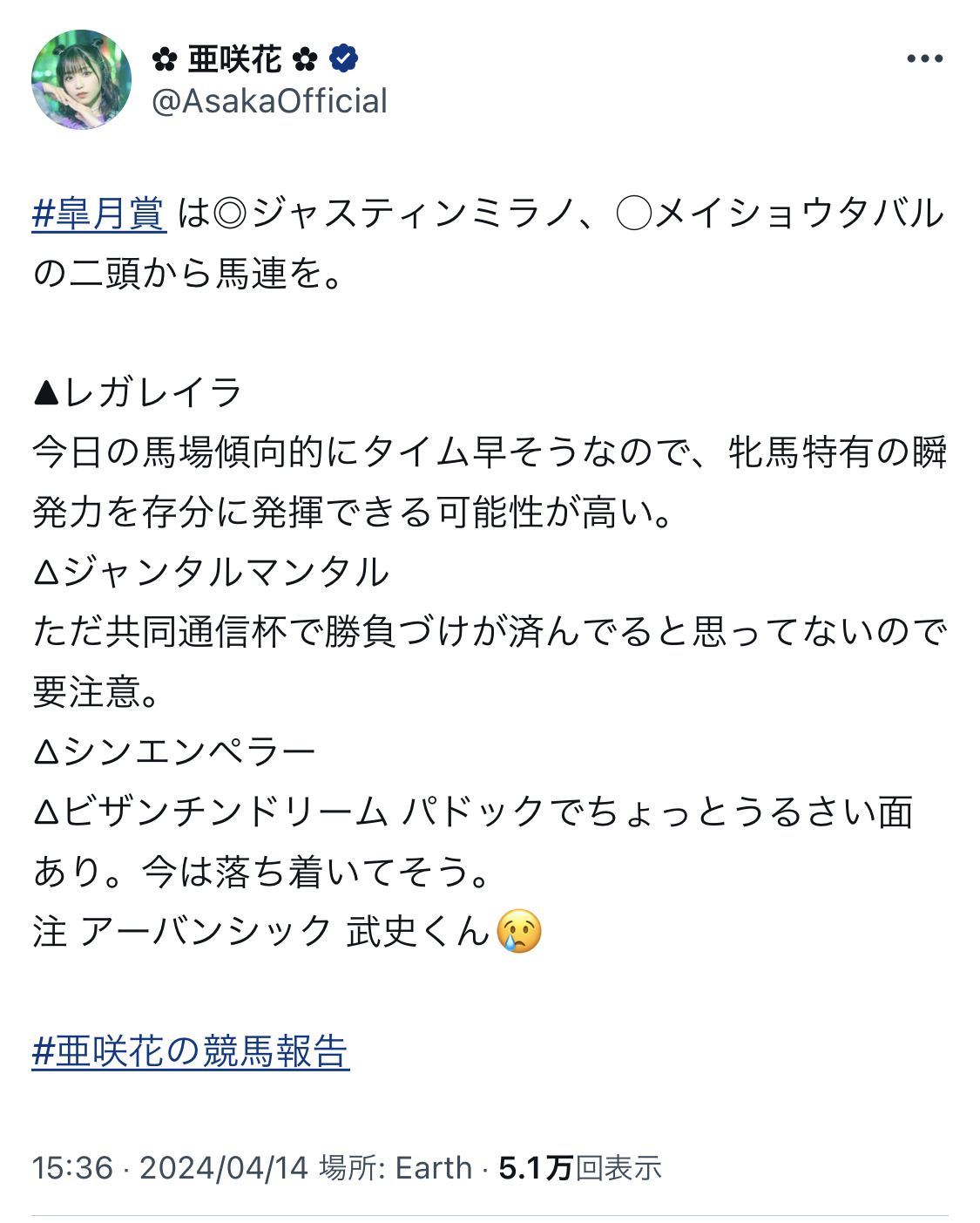 推しの子のメイショウタバルがいい枠引いたので期待しちゃう