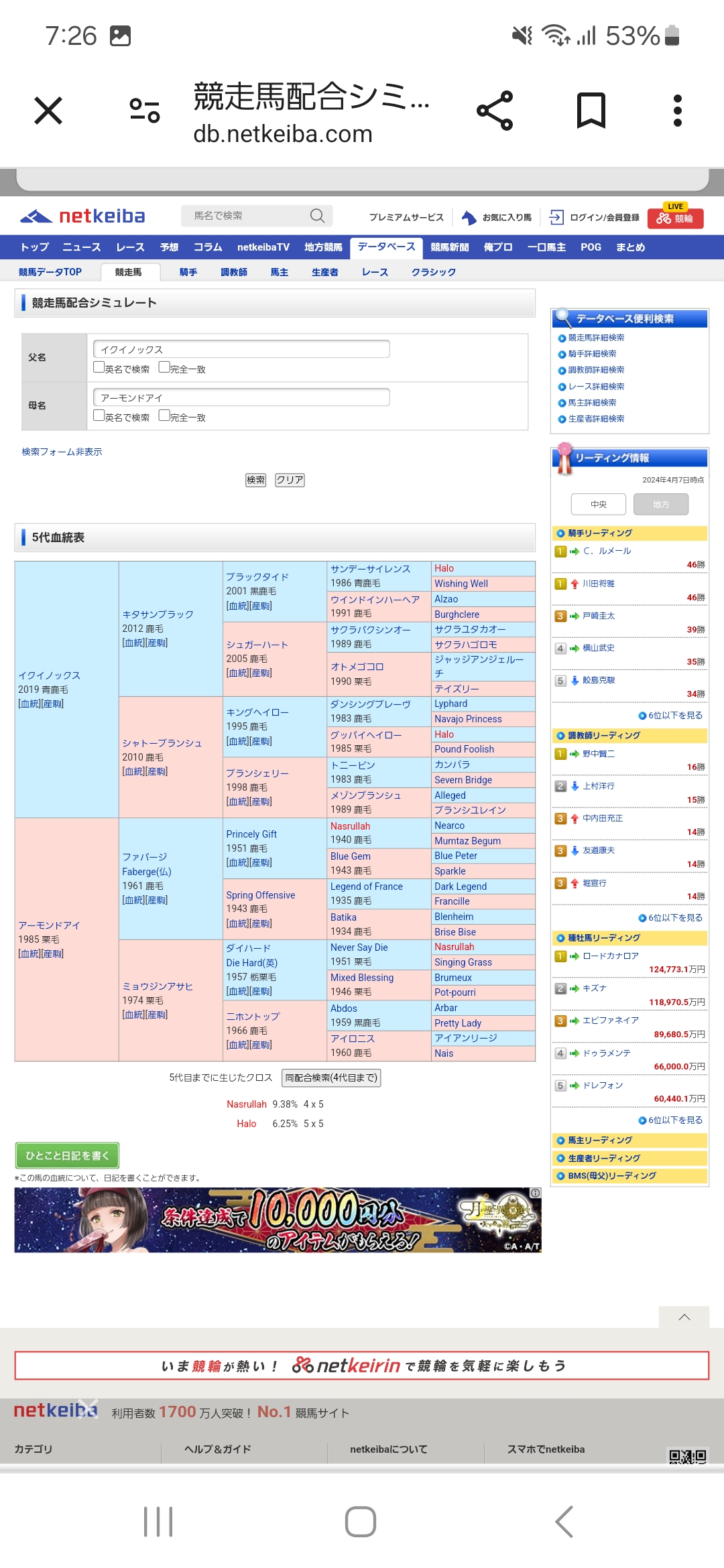 「種牡馬なんてのは速いサラブレッド作る為の道具だ、好きな牝馬も何もねーよ」