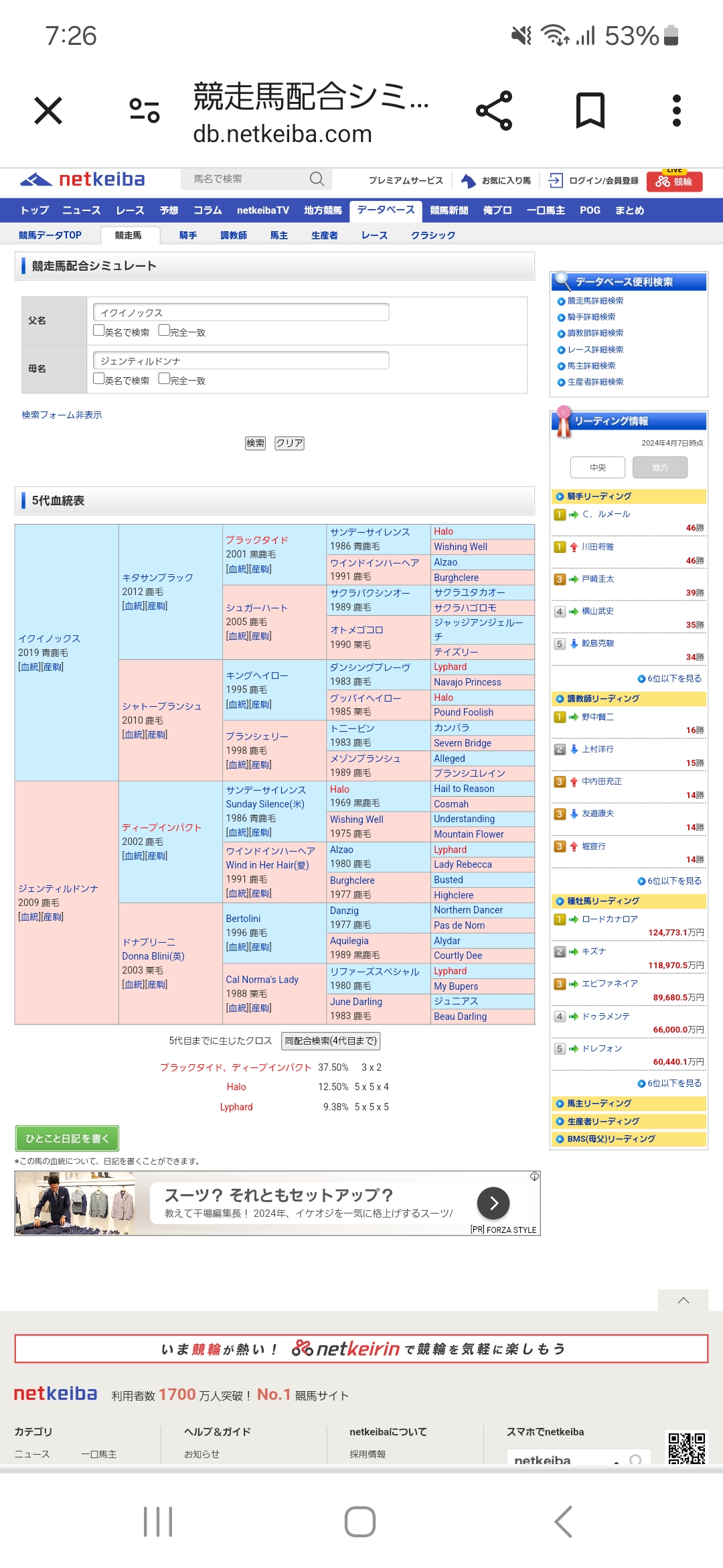 配合詳しくないけどもしかしてジェンティルは危険な配合なのか?