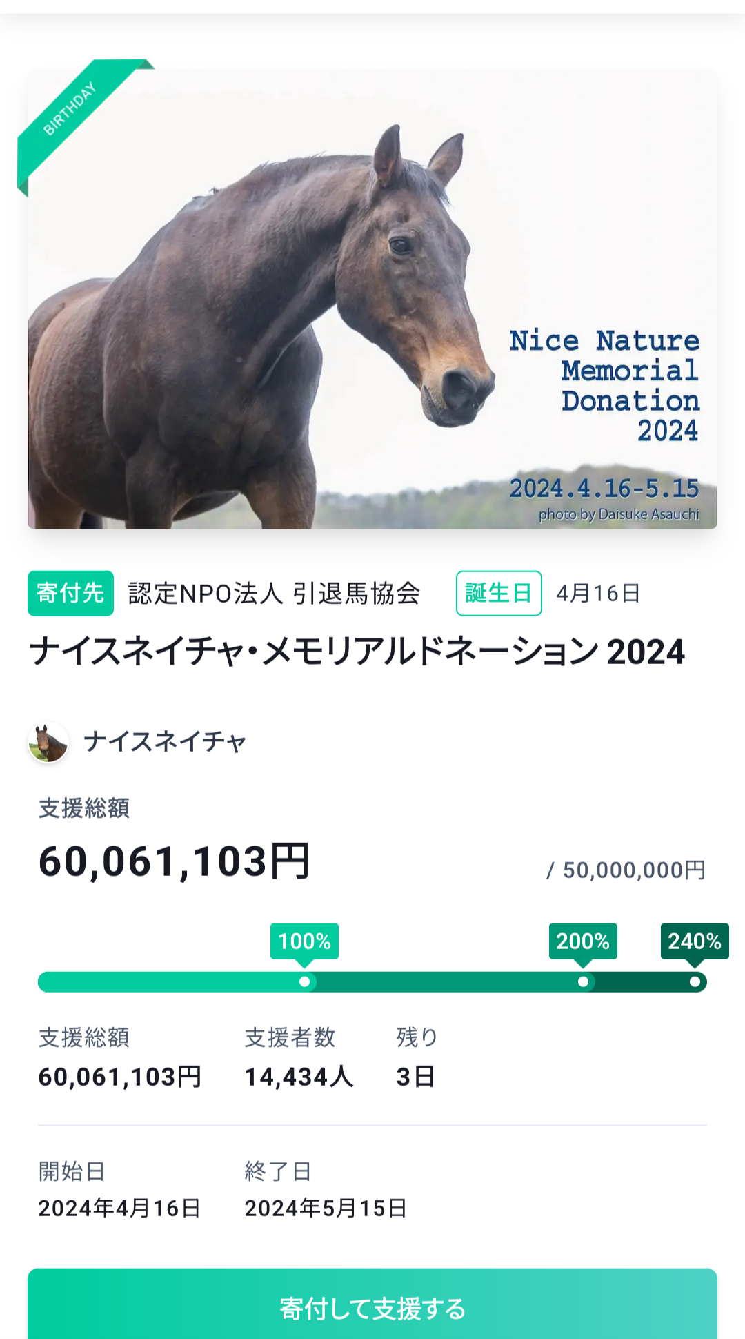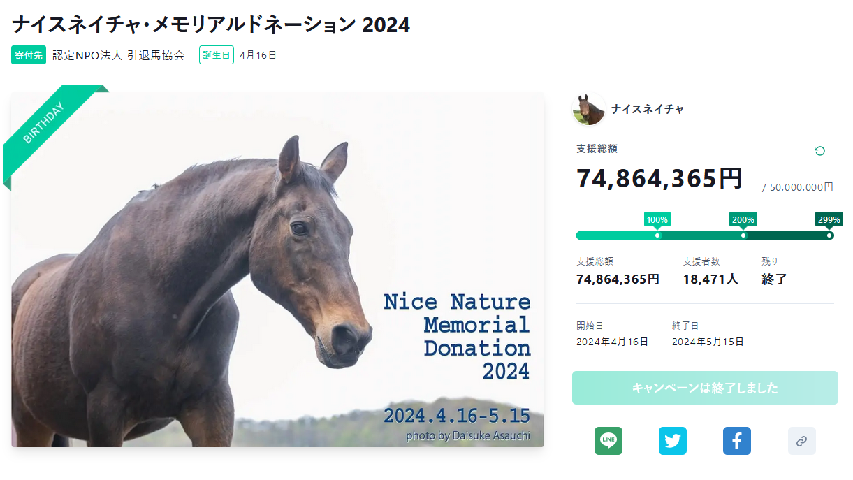 ☆「ナイスネイチャ・メモリアルドネーション2024」終了に寄せて