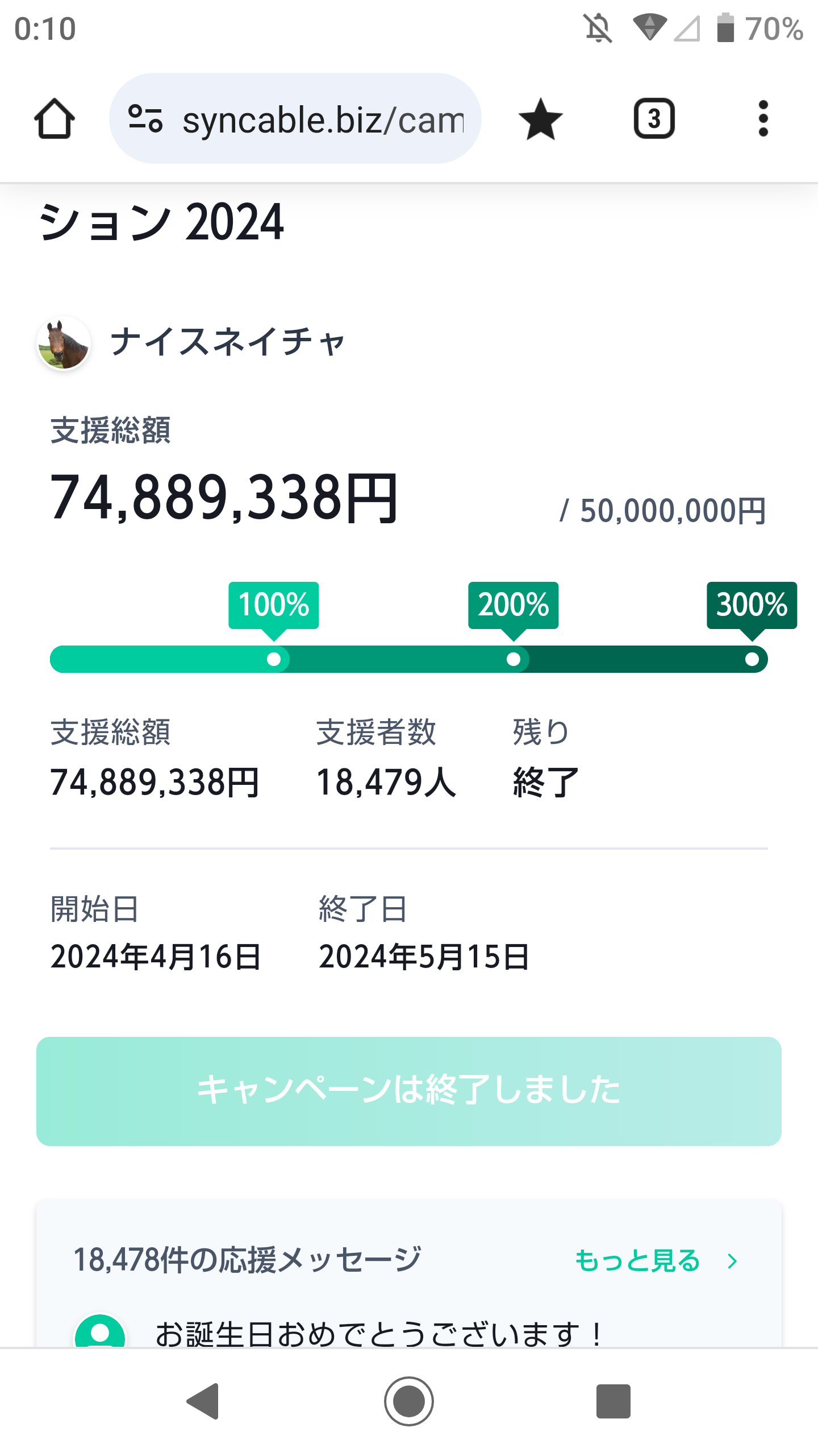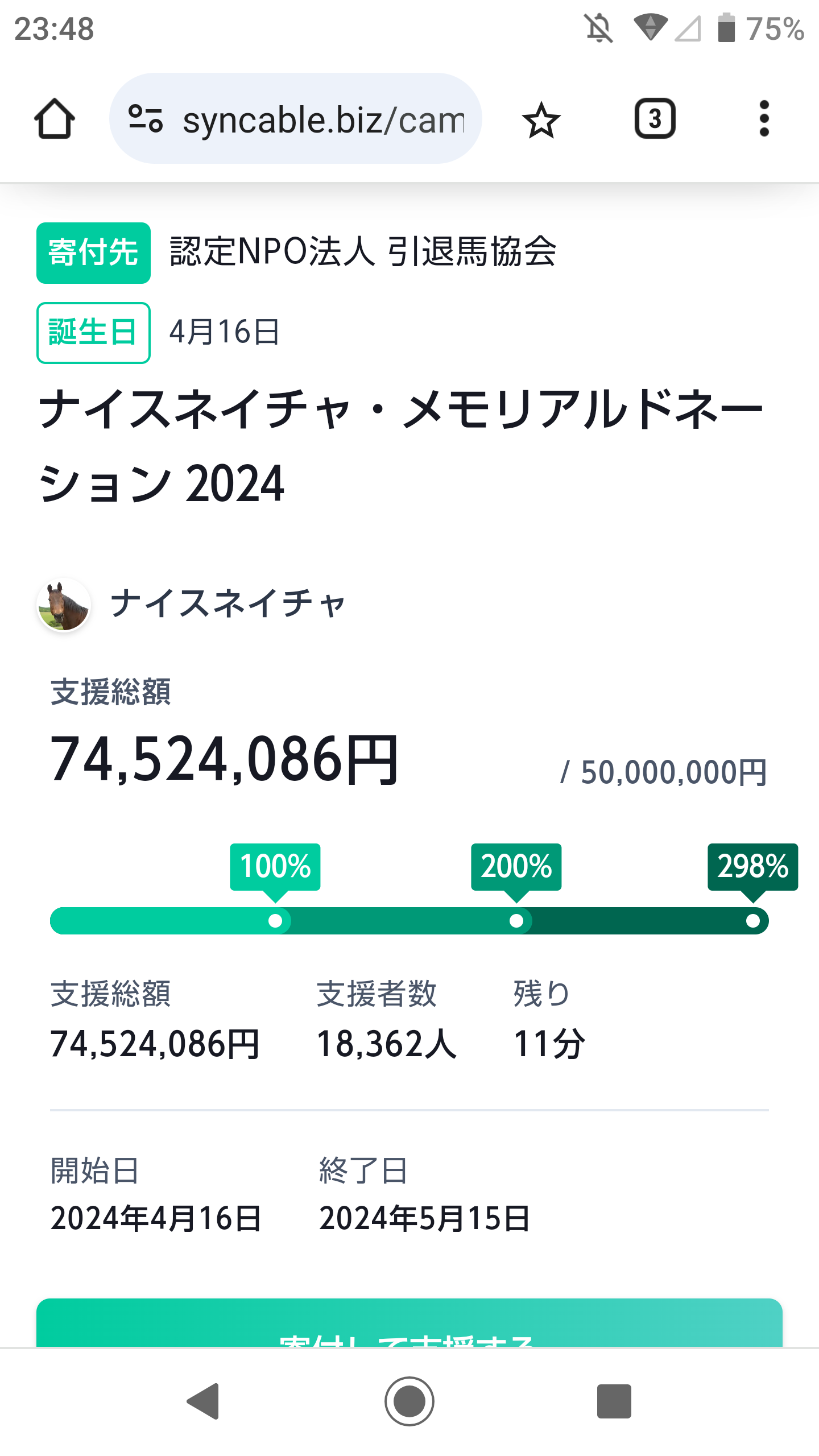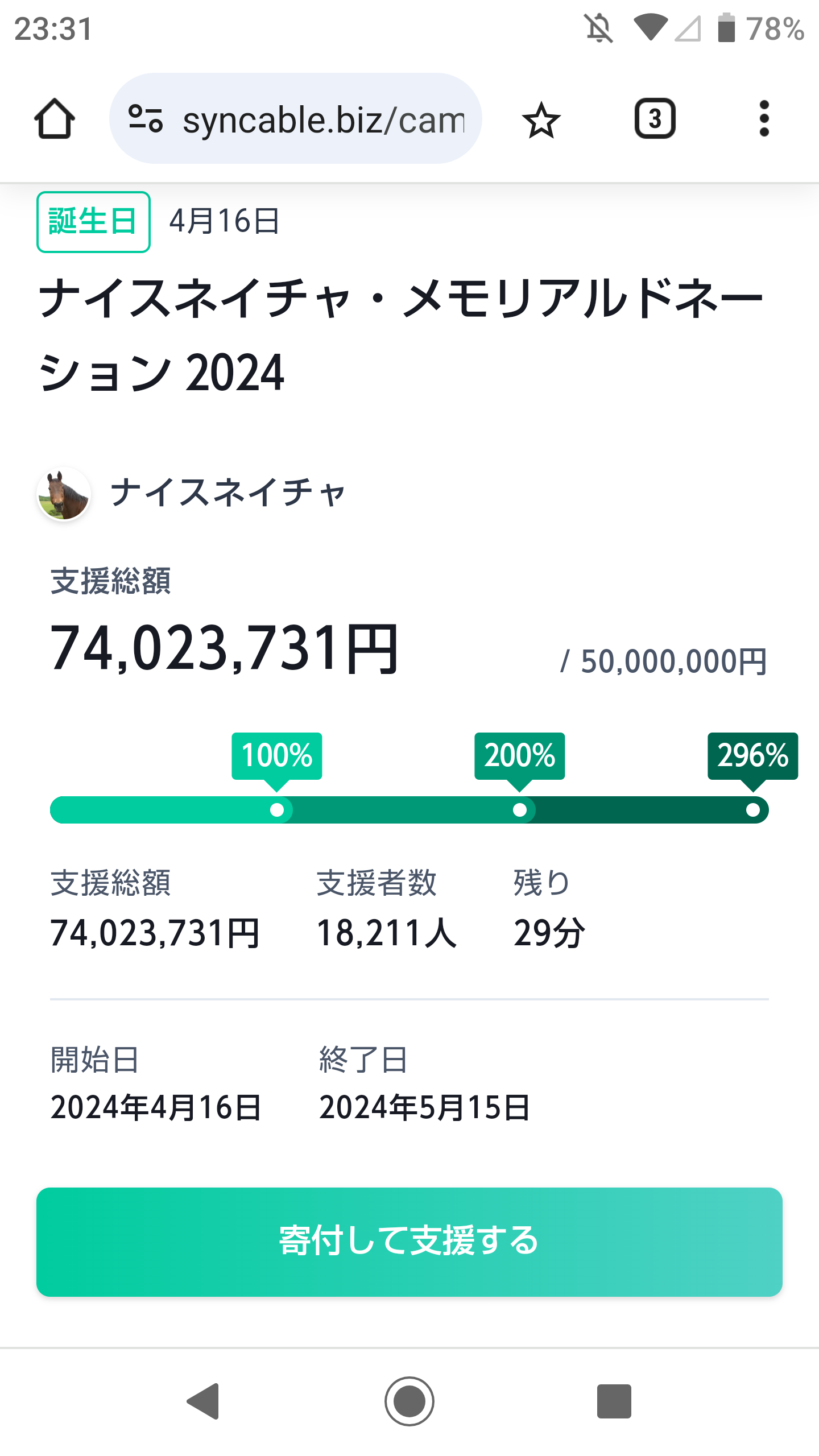 そういう小額が積み上がって4500万行ったんなら本当にたくさんの人がネイチャを愛してるってことだよな