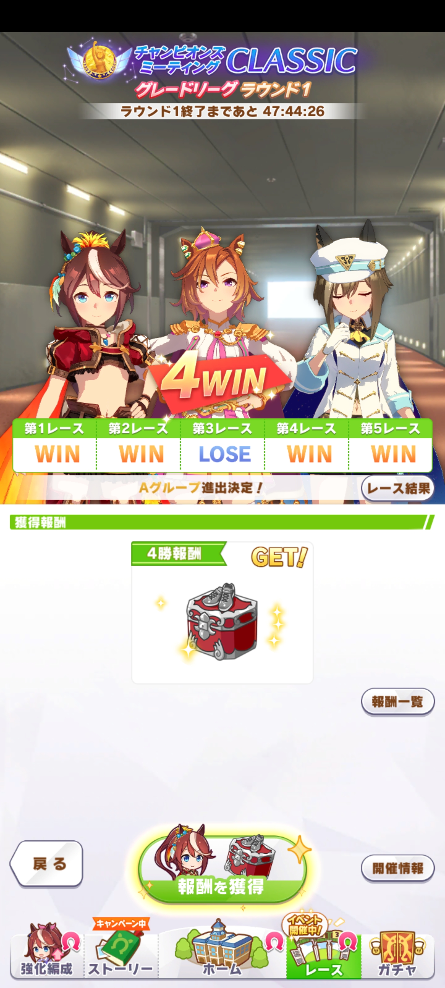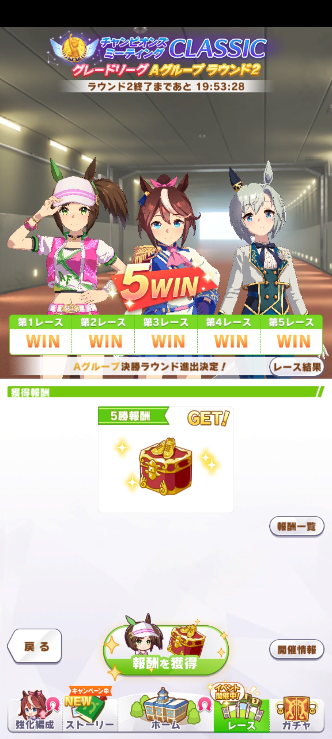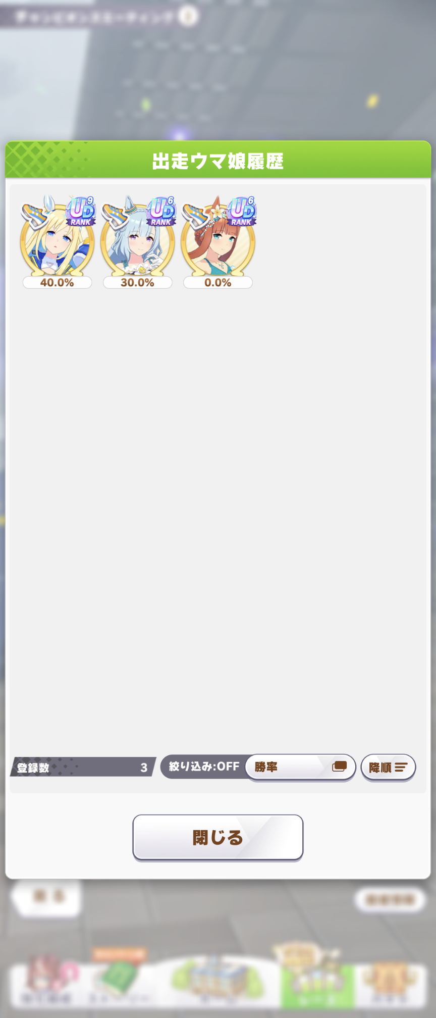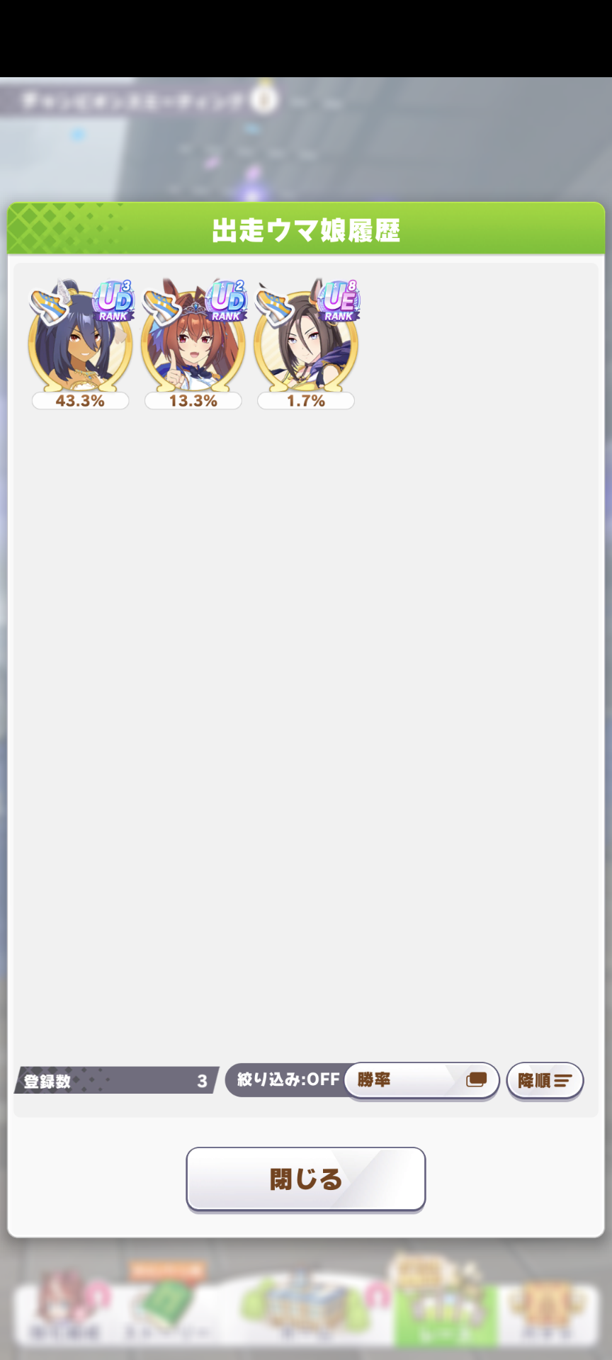 なんとか勝てたので報告。王手のすごさ再認識(1着の☆2ダスカは逃げだから王手ないけども)