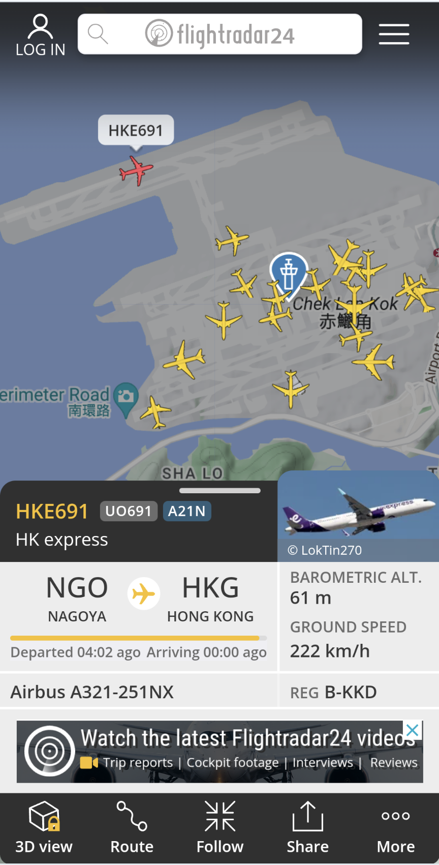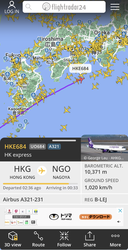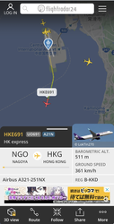 スレ主搭乗の飛行機現在台湾台中市沖合通過中