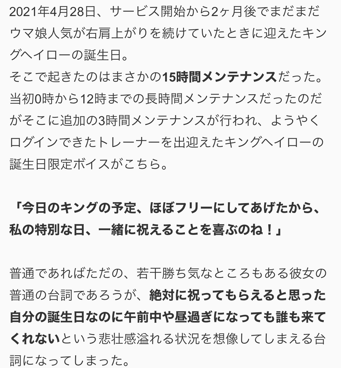 キングヘイロー誕生日、ほぼ丸一日メンテ事件