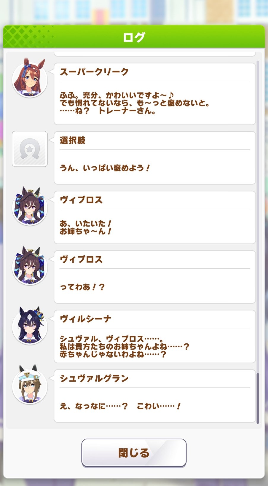 育成実装前なのに負け癖イメージがついてしまったヴィルシーナ。はたしてまだ見ぬヴィルトレ相手に恋愛的優位を取れるんだろうか……