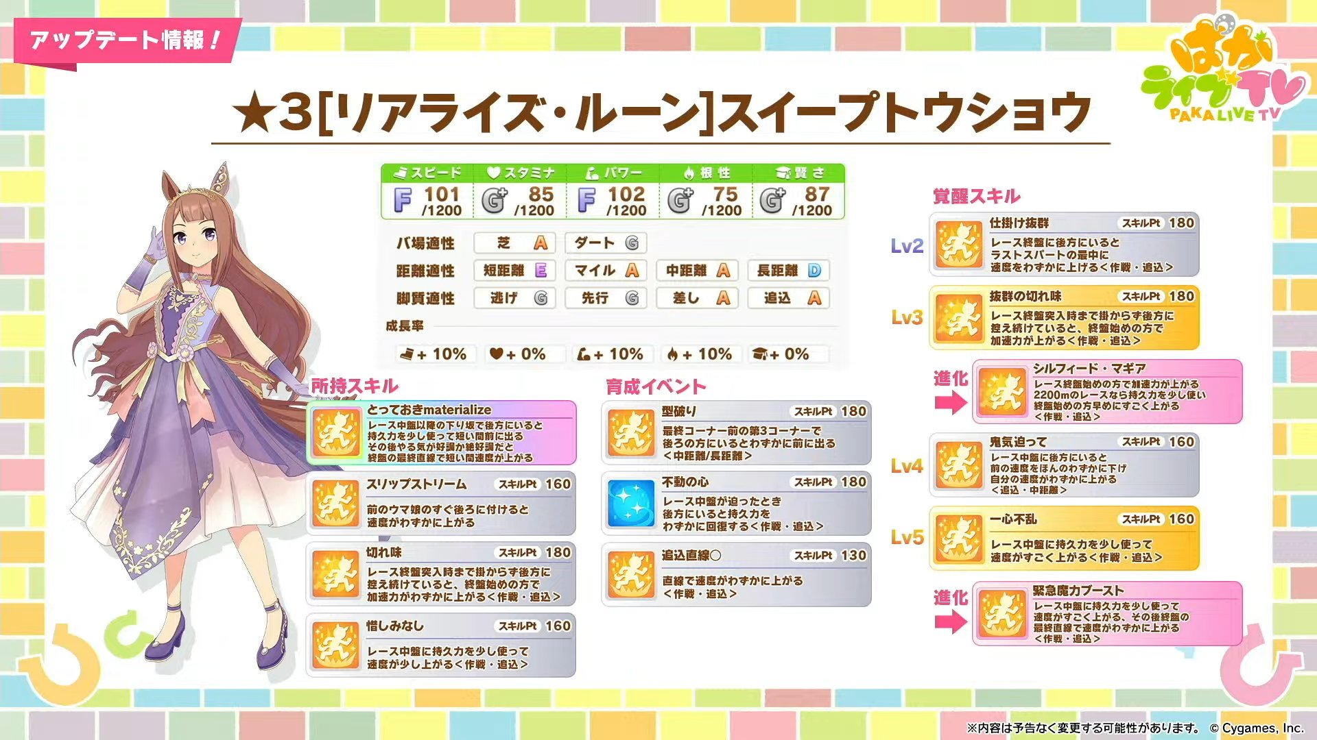スイープと新衣装で組む候補がパールとラモーヌなら