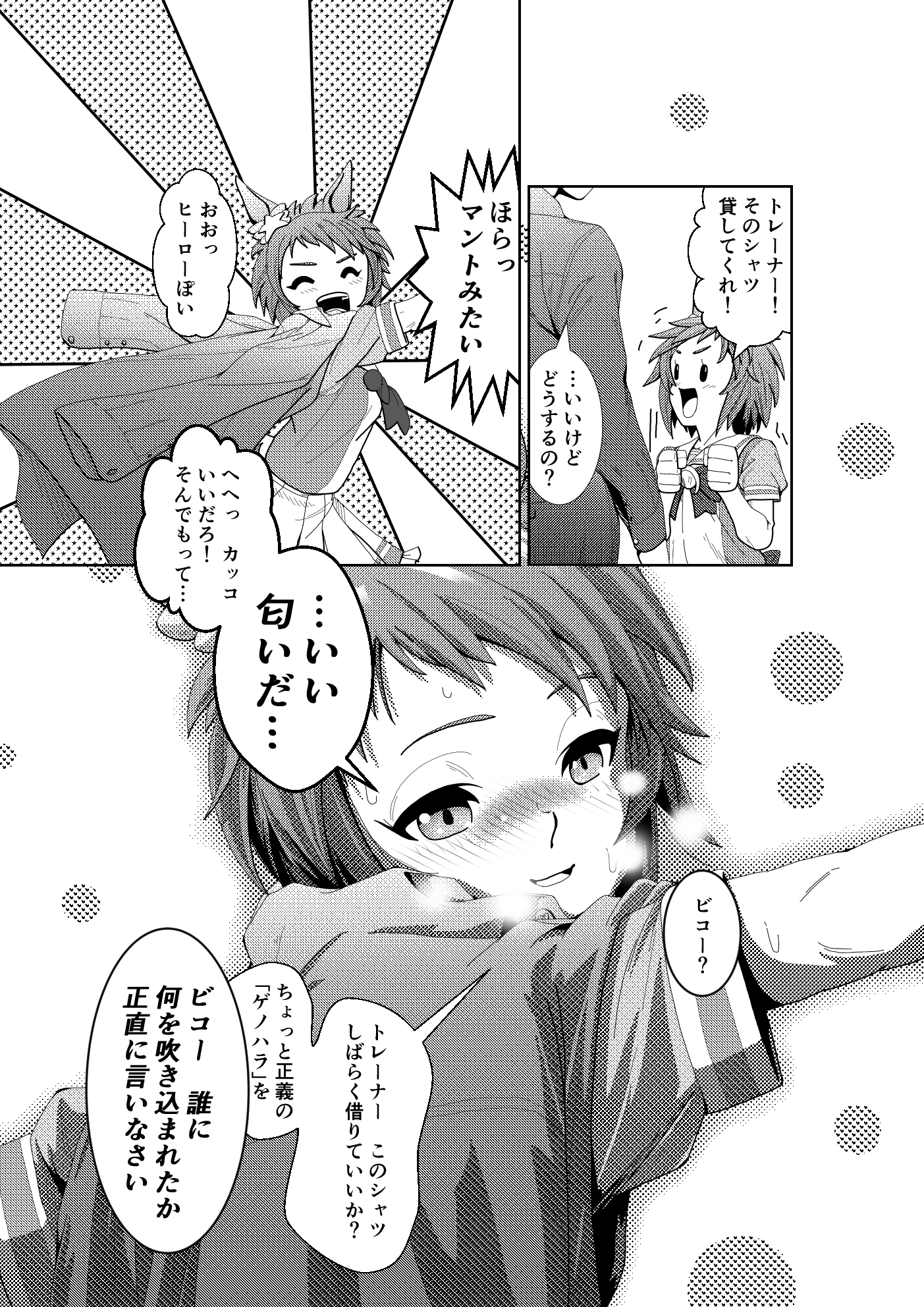 例えばなんだが、フジキセキの「いい香りがする人とは」のくだりを聞いて、もしもいい香りと感じなかったら…と気になっていてもたってもいられなくなりトレーナーの匂いを嗅いだらクセになってそう……って思っちゃったんだ。