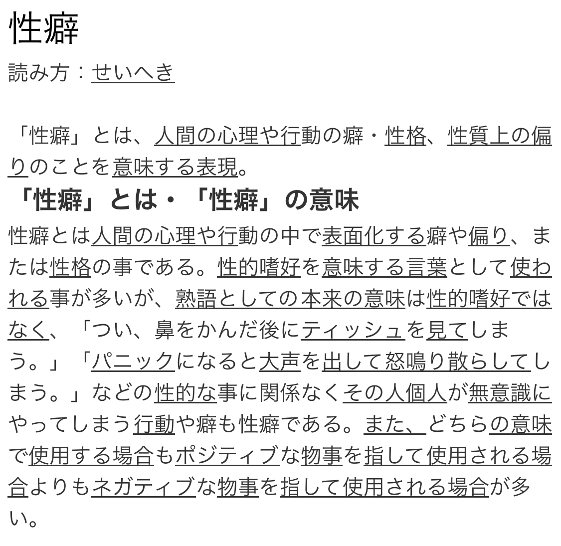 本来は性的嗜好の意味じゃないからな、性癖