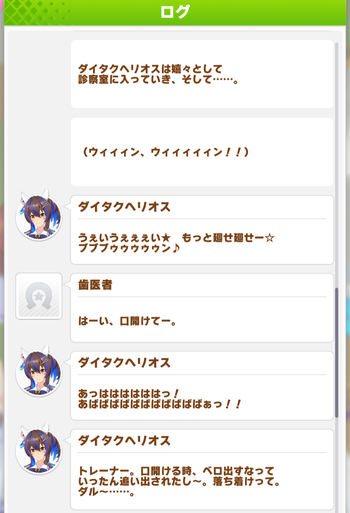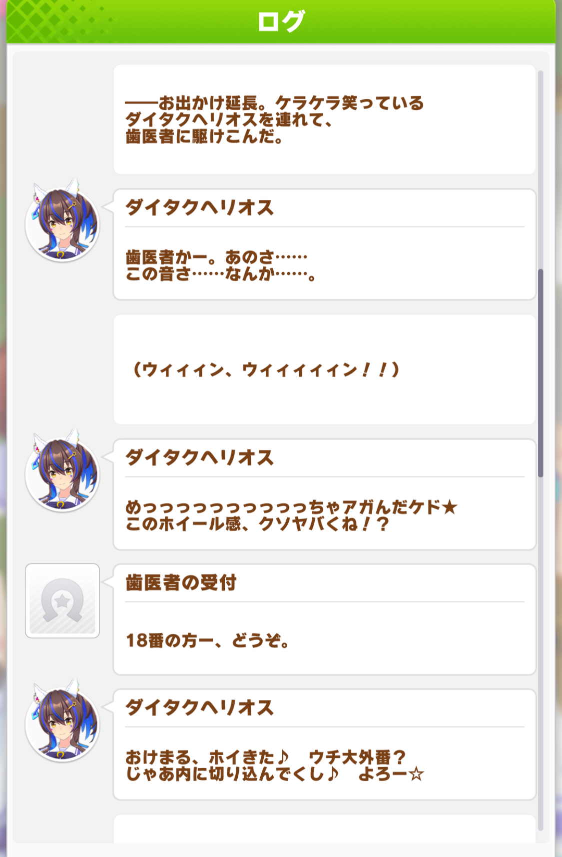 ヘリオスの育成イベントで歯医者に行くイベントがあるでな
