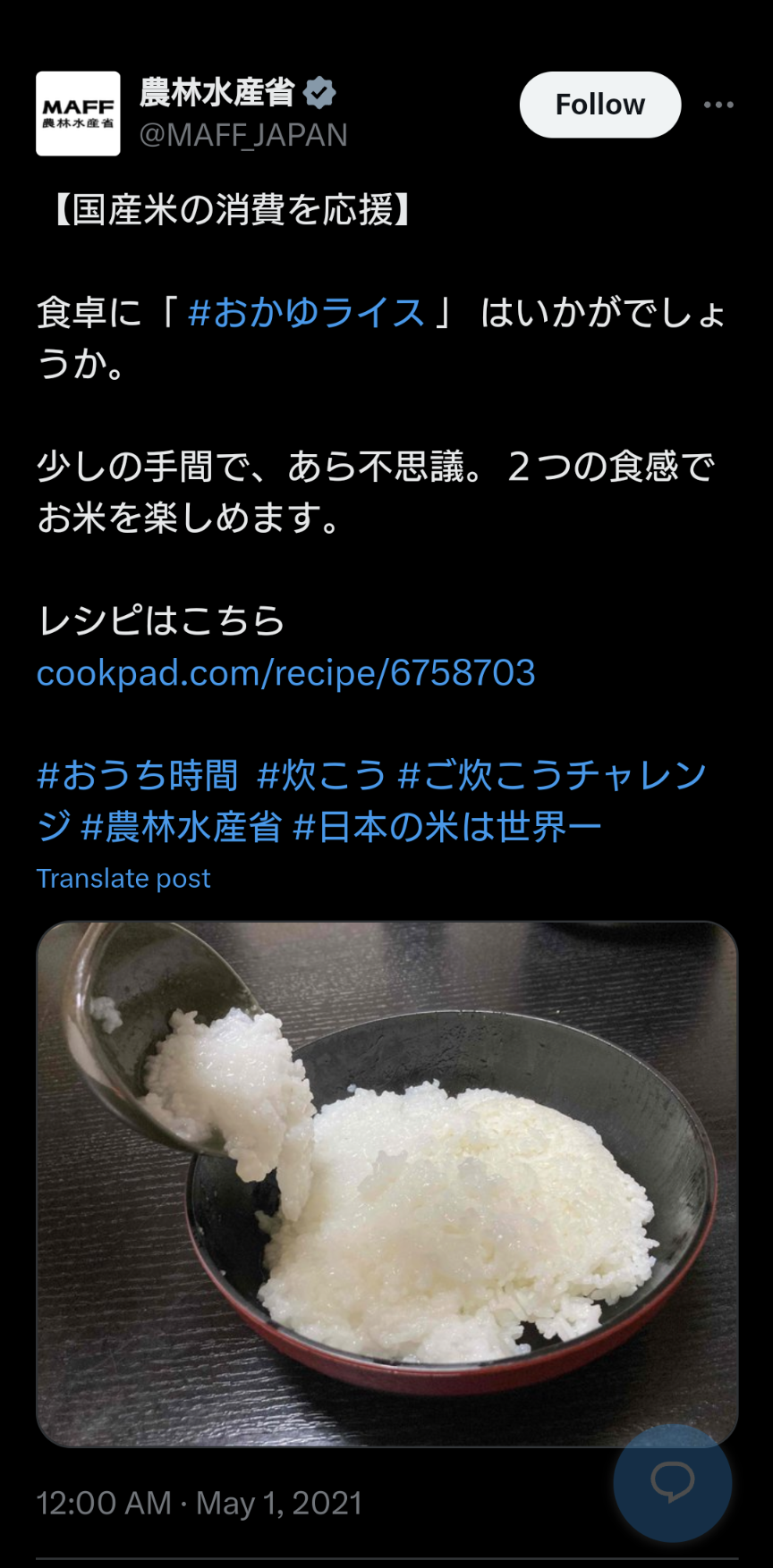 ケンタ入り炊き込みご飯がウマいらしい