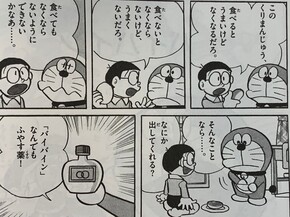「タキえもんに頼んで栗まんじゅうが減らない薬を作ってもらったんだ…」