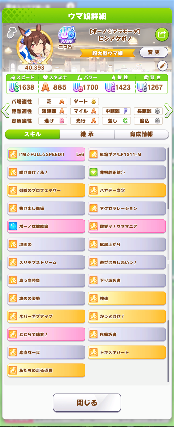 逆に言えばスピードを少し甘えるならば緑スピスキル(夏、左、踏み込み上手)は甘えてはならない
