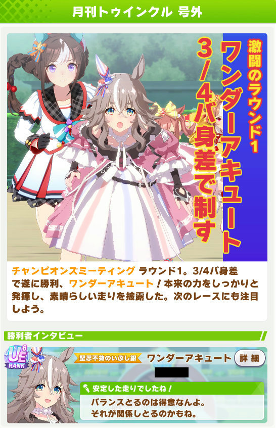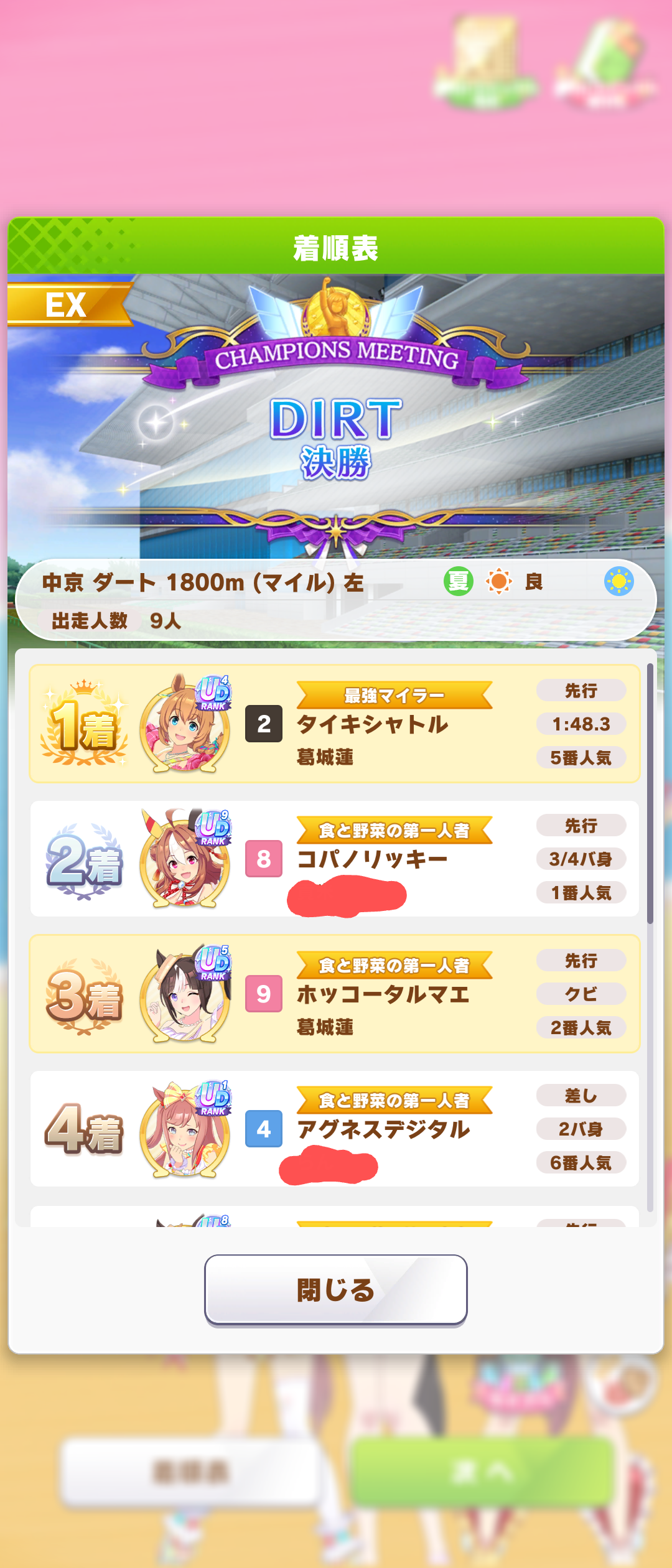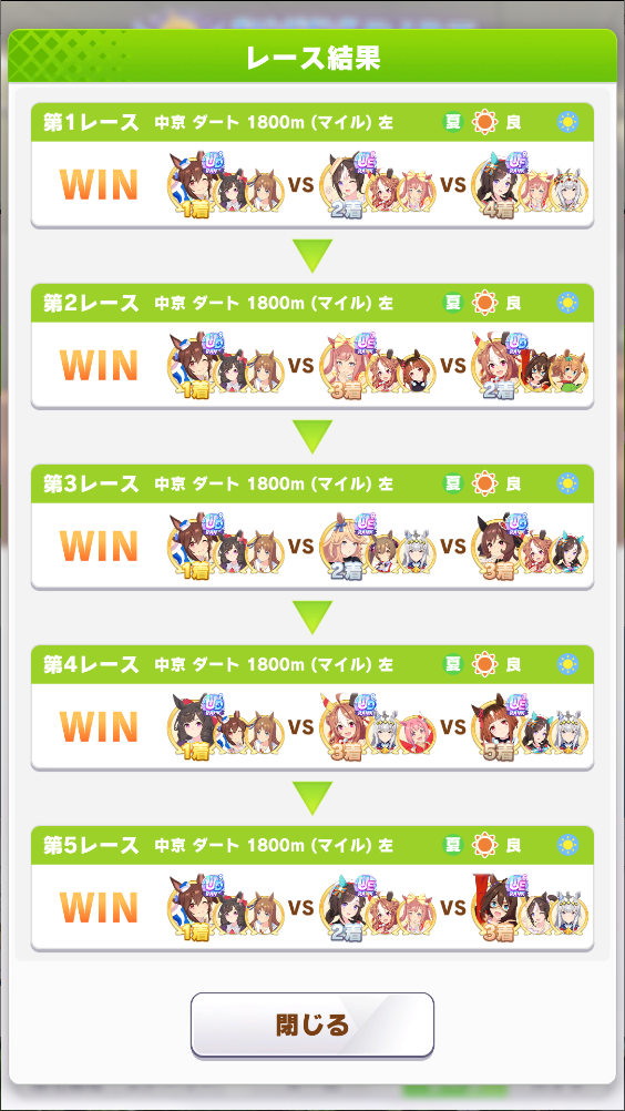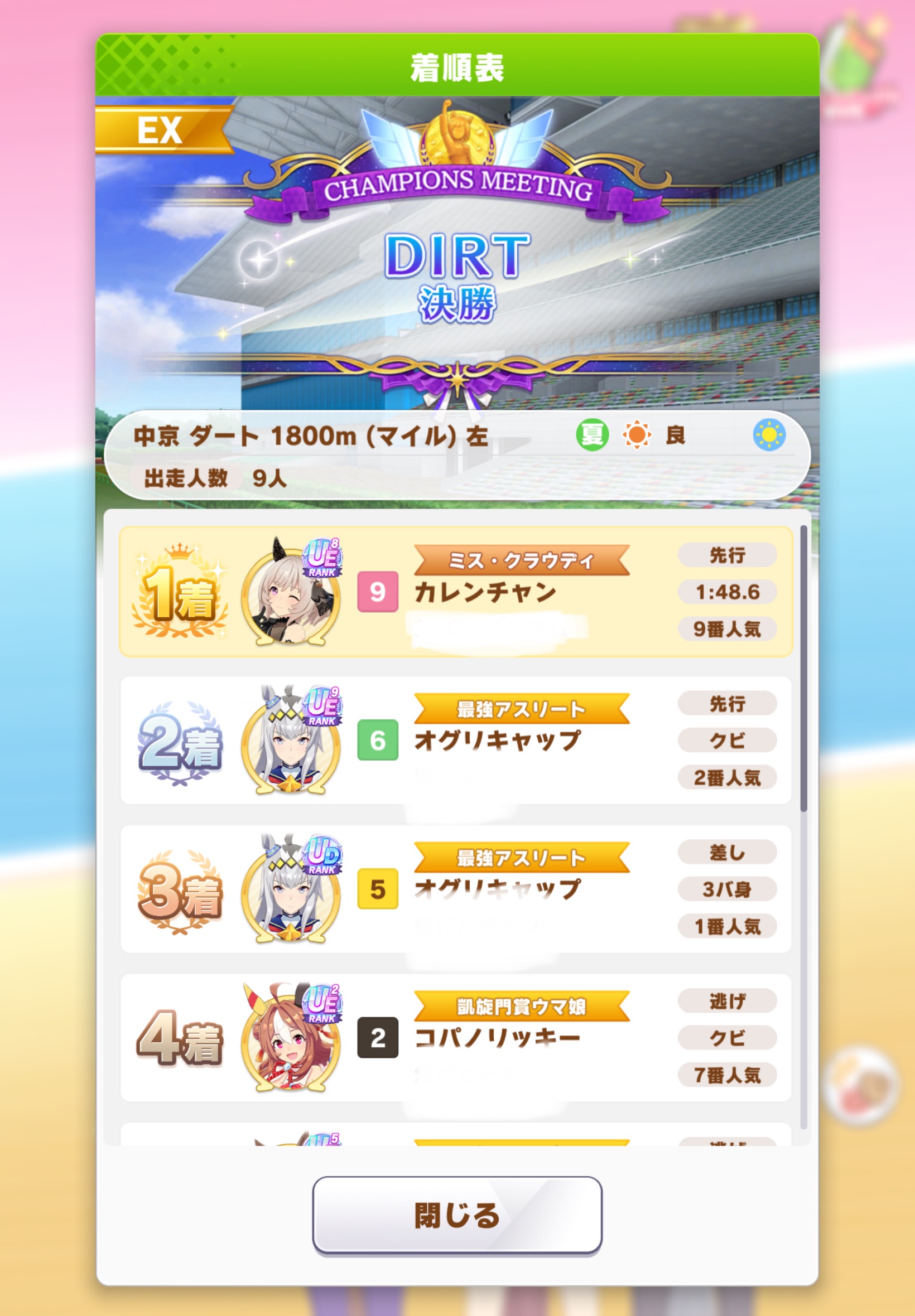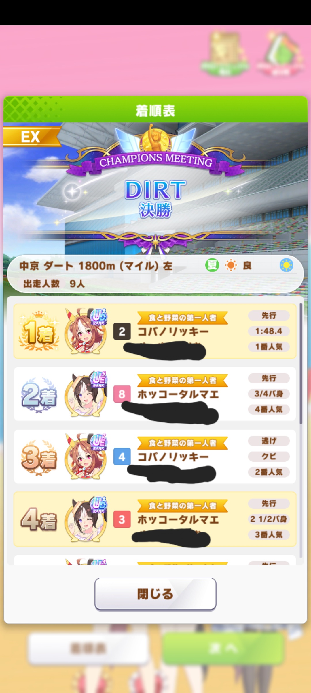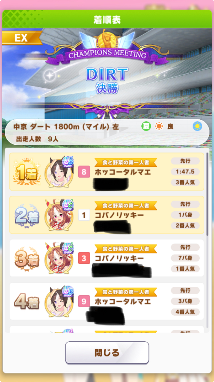 先頭と20馬身とか離れてて独占力出る前に終わったのは危うかったが、相手がスタミナ無礼てて助かった