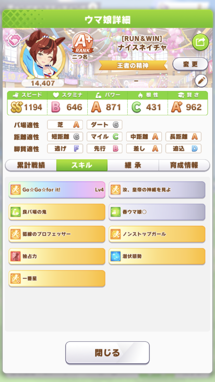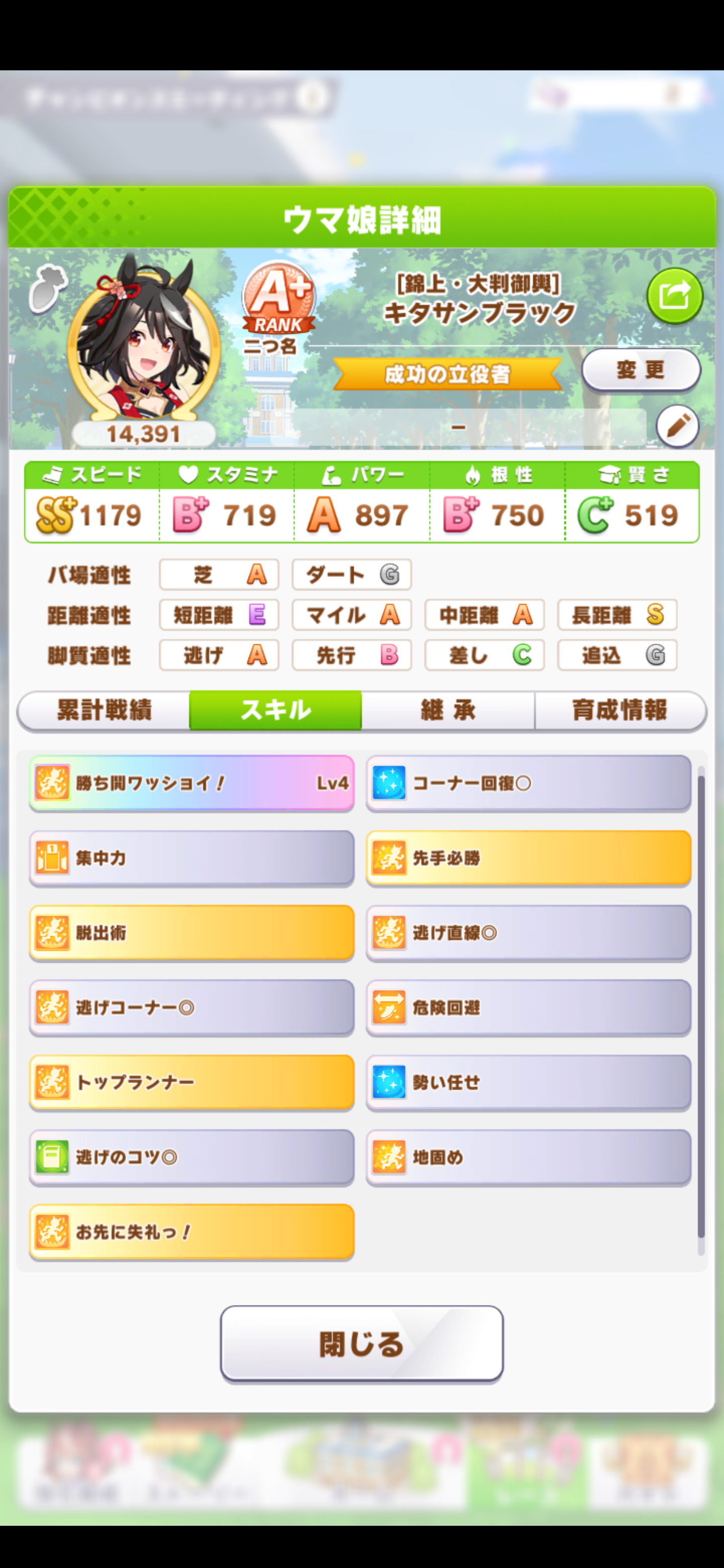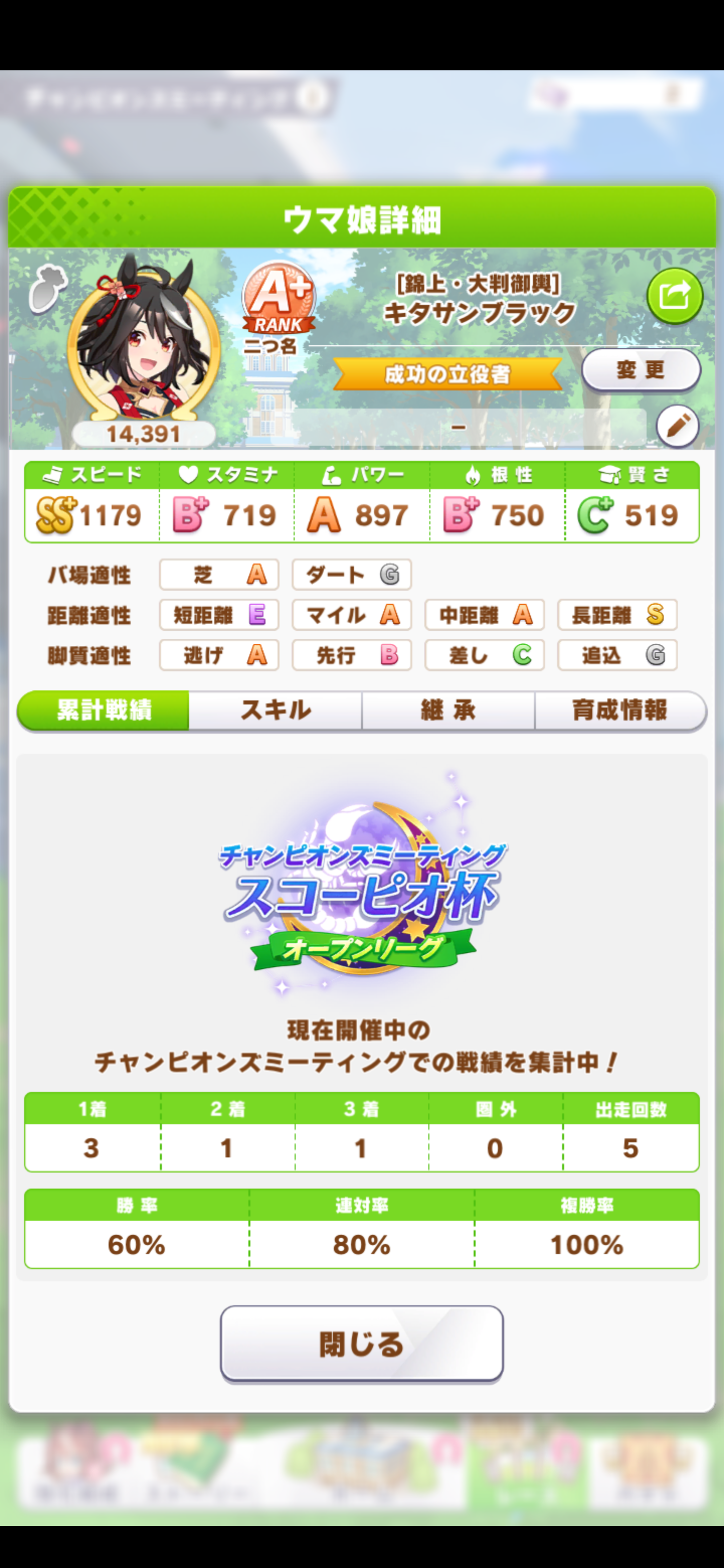 チャンミ関係無しに育成したキタちゃんだけど勝てたらOKか