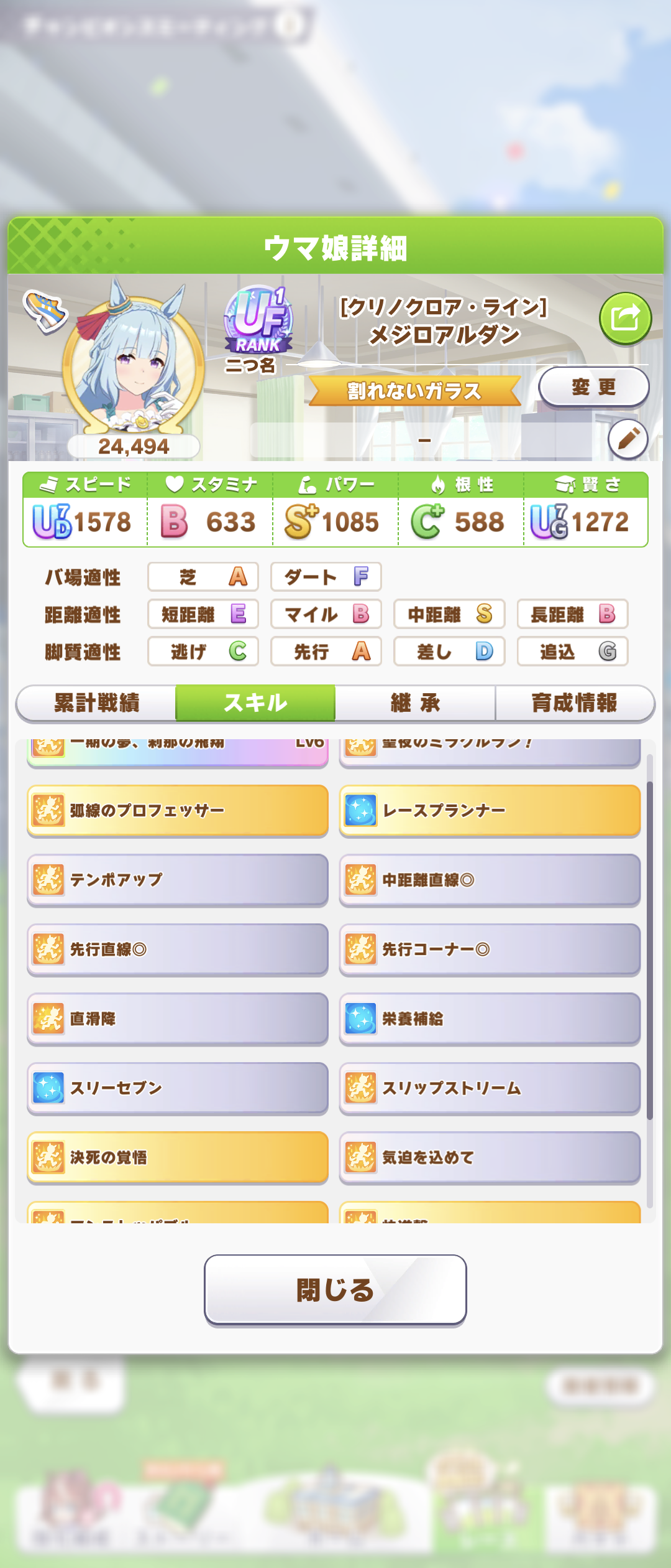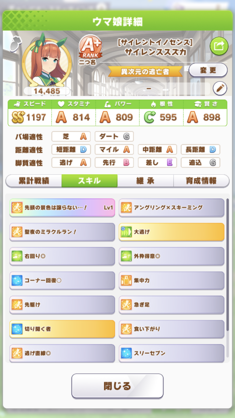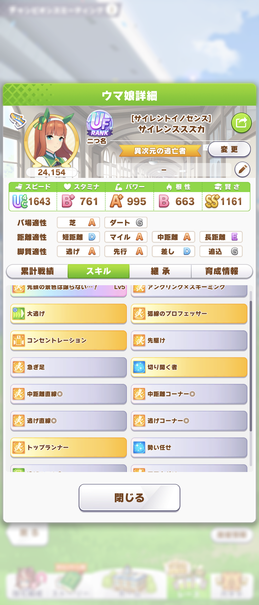 中盤は距離脚質直コ◎でスピは1200まで賢さももう少し抑えたい