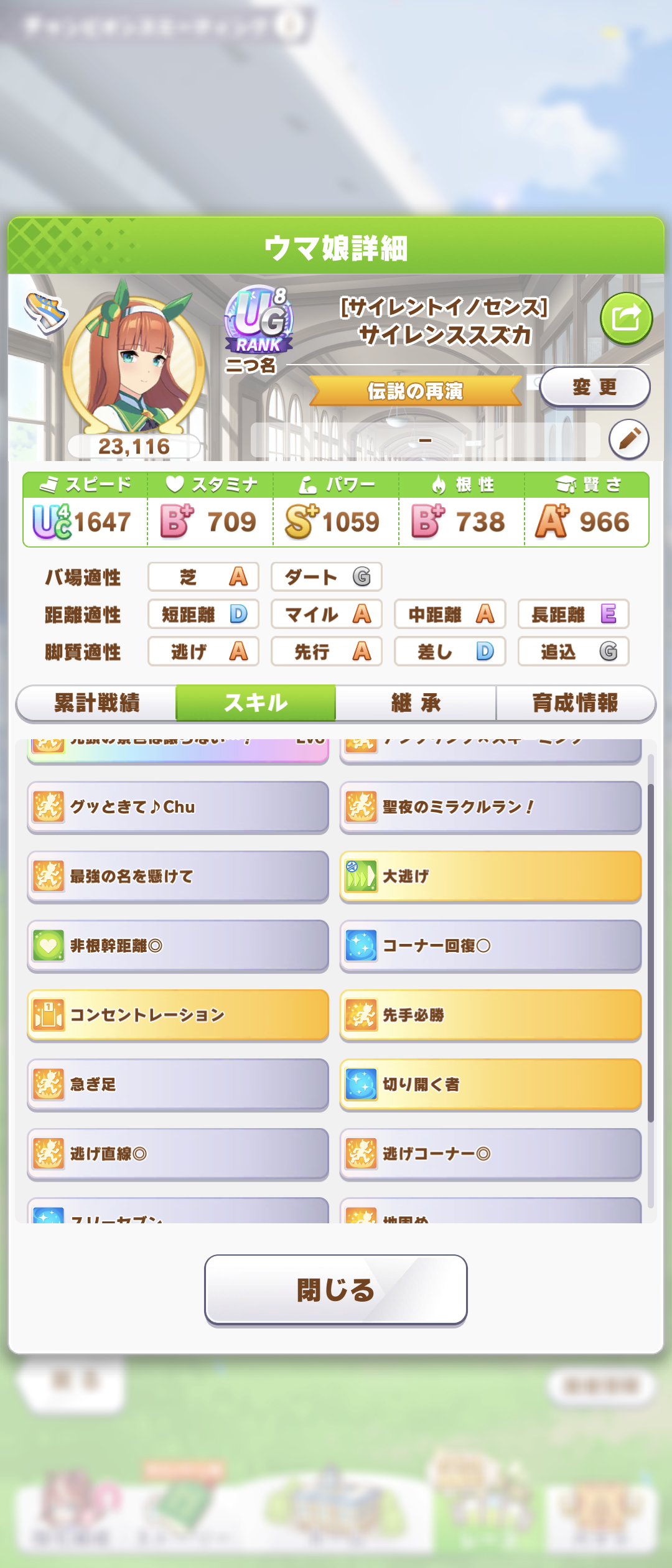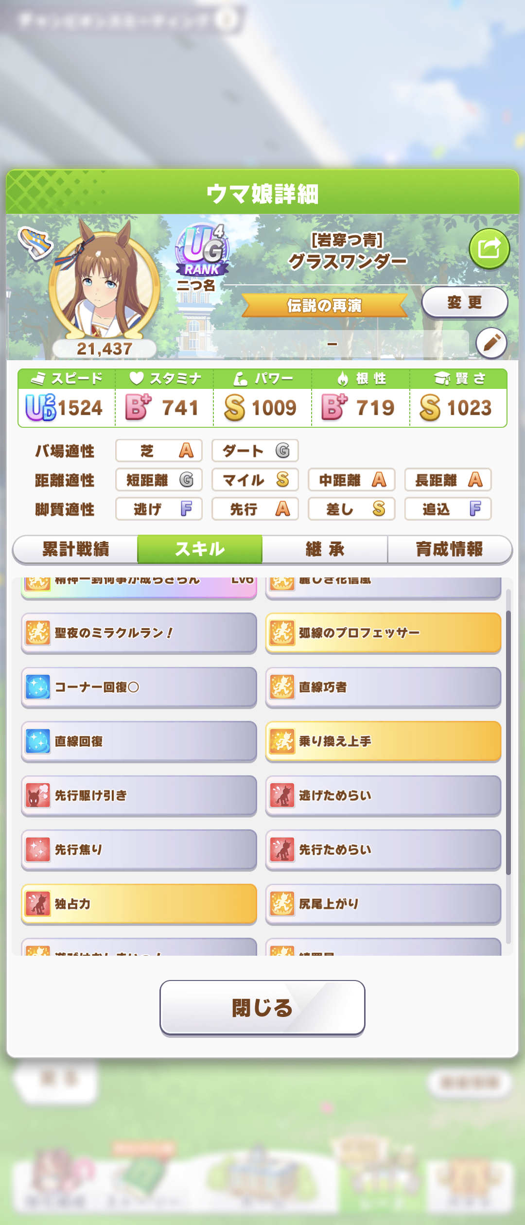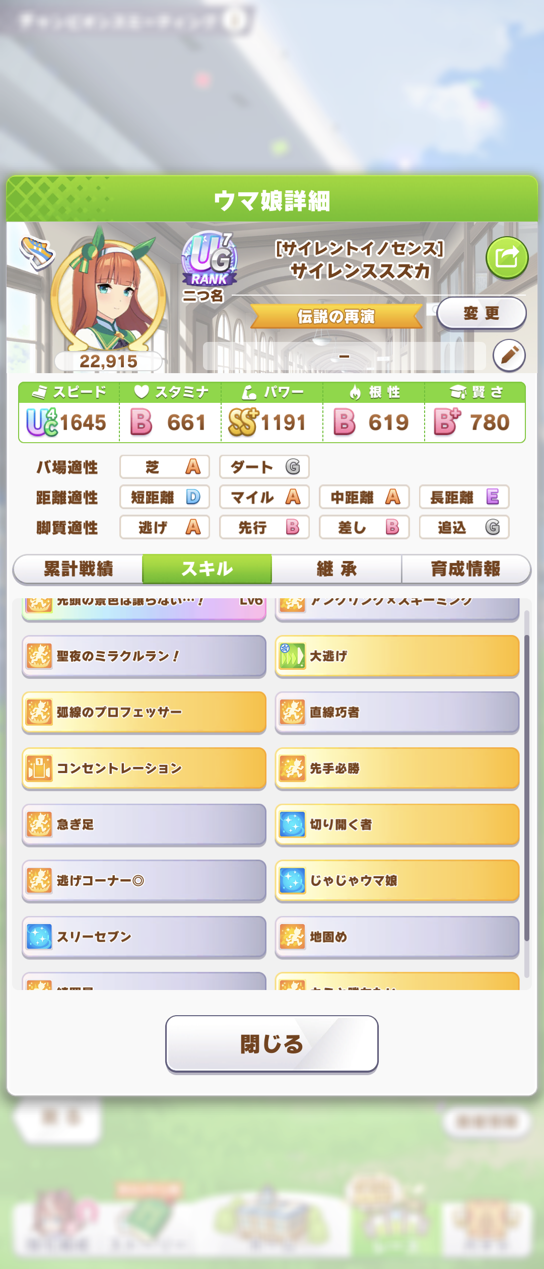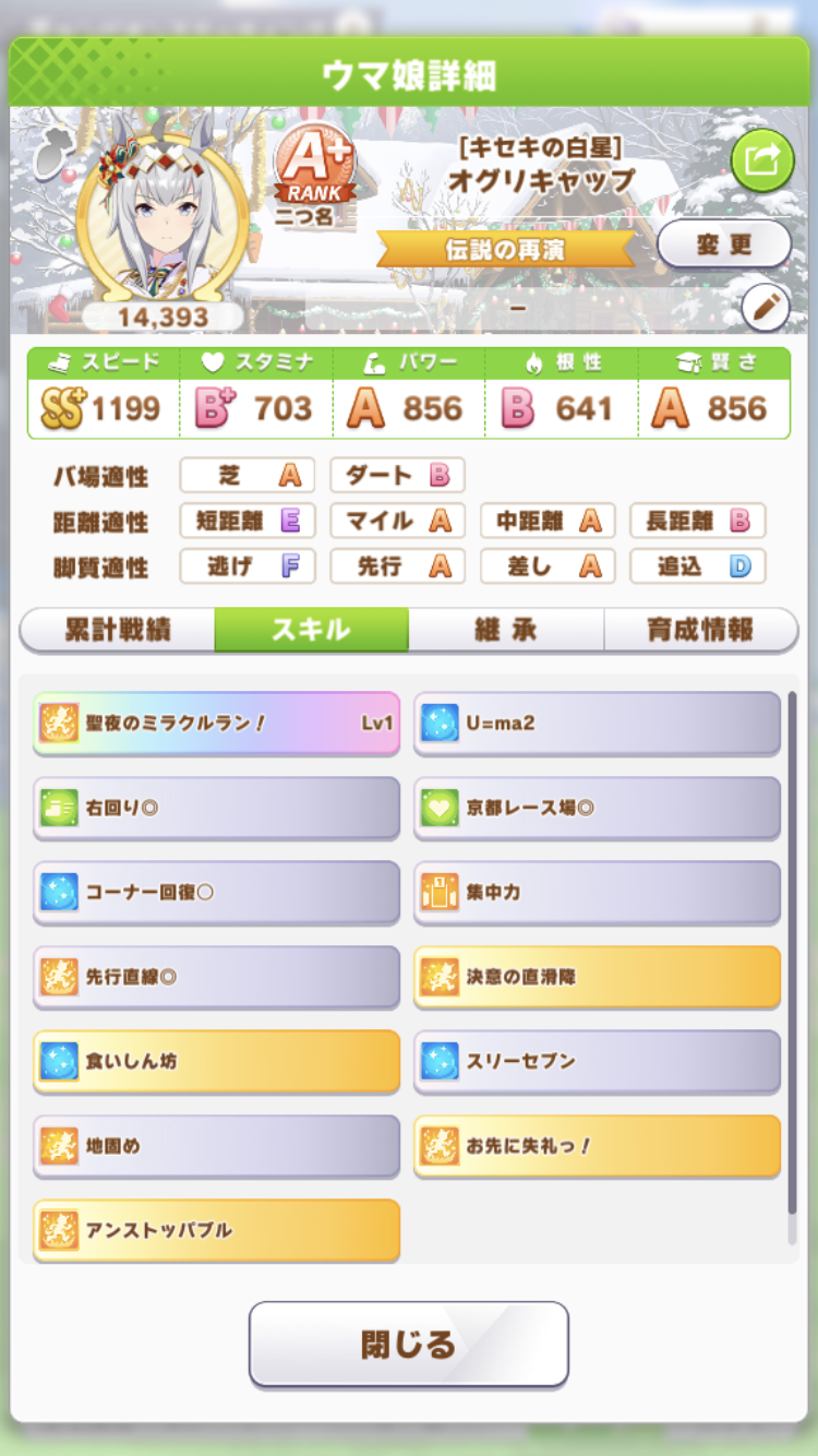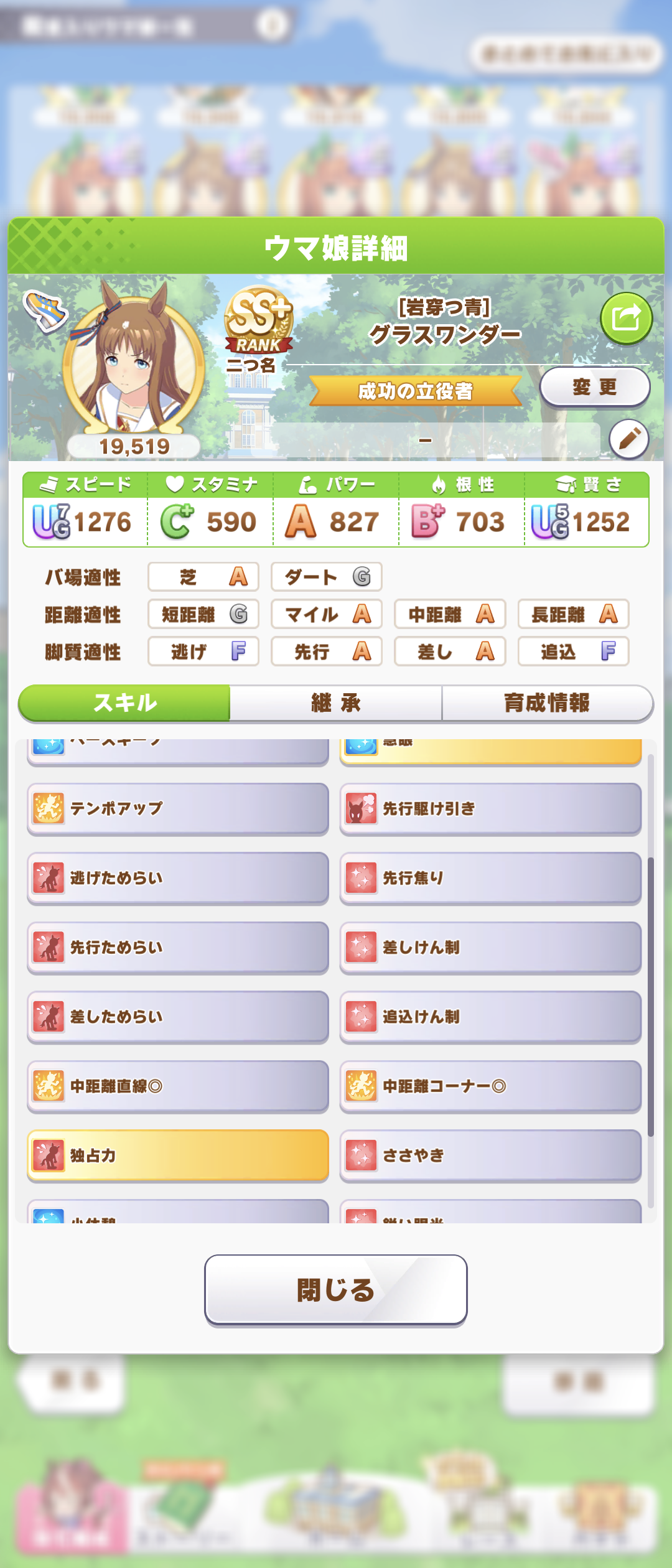 妙にスキル数多くなったスズカさん(+地固め)とテンプレクリオグリと春の使い回しネイチャ