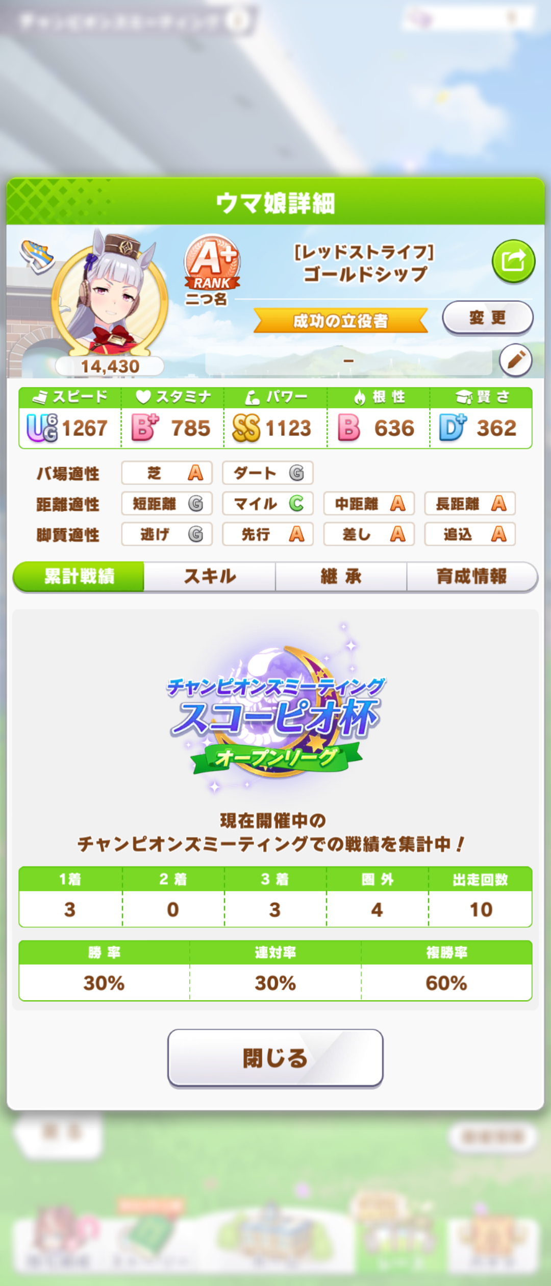 ただ成長補正とかがグレードみたいに完成難易度の差に結びつかないから、そう言った面でオープンではクリオグリは相対的に弱くなってるのかもしれない