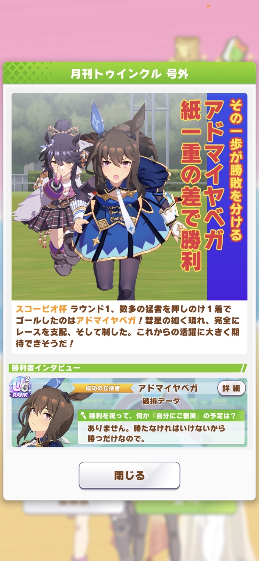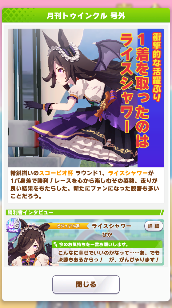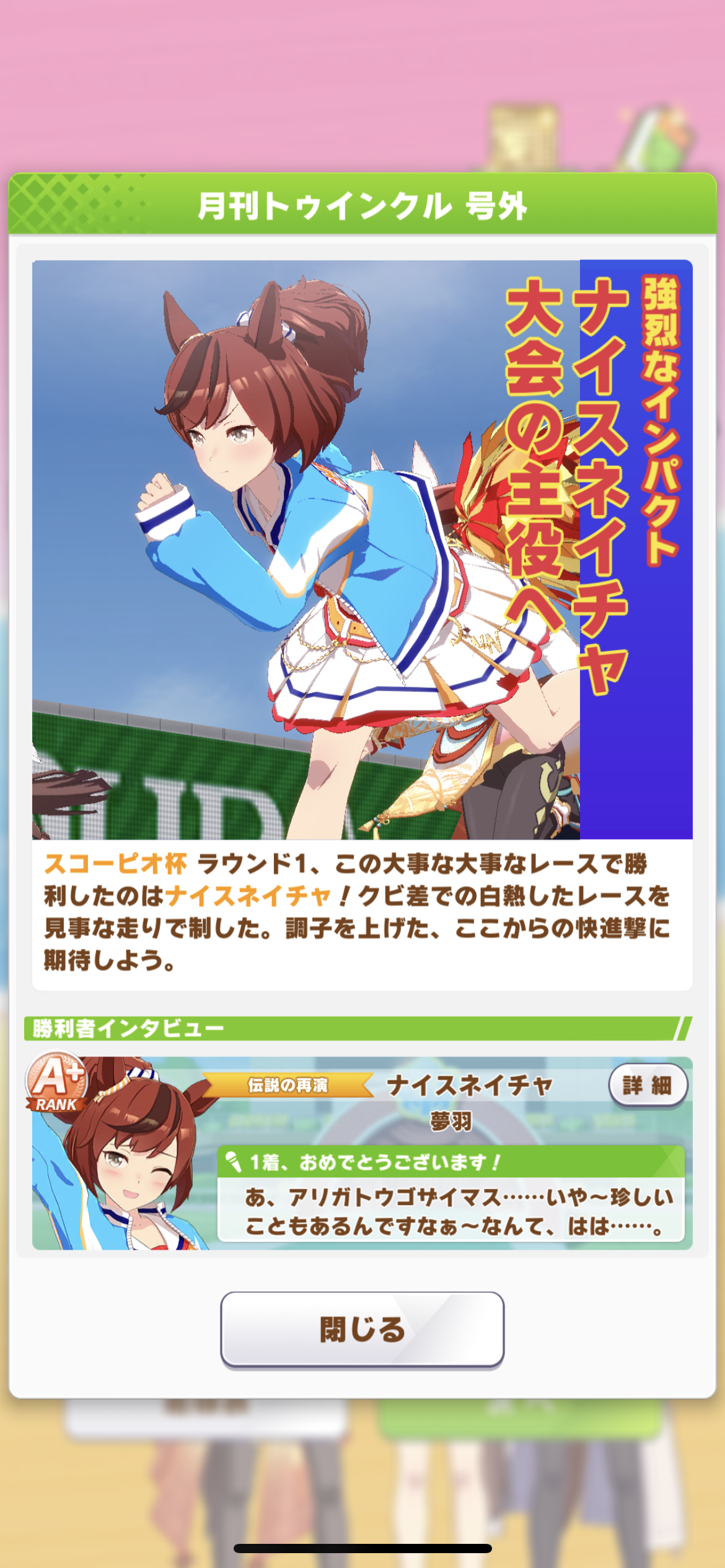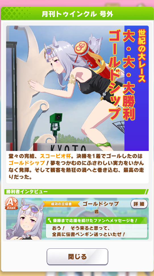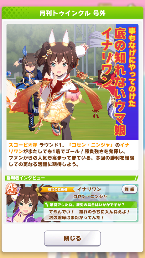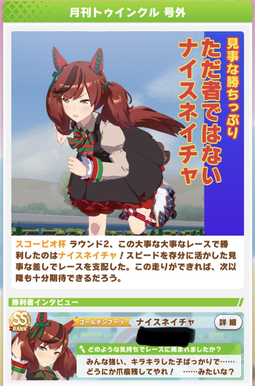 ネイチャ、クリオグリ相手によく勝ってくれた!