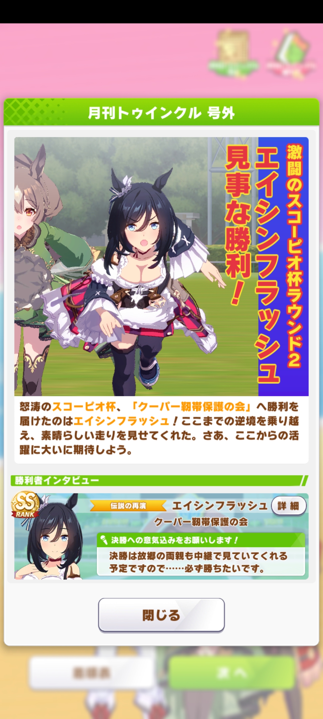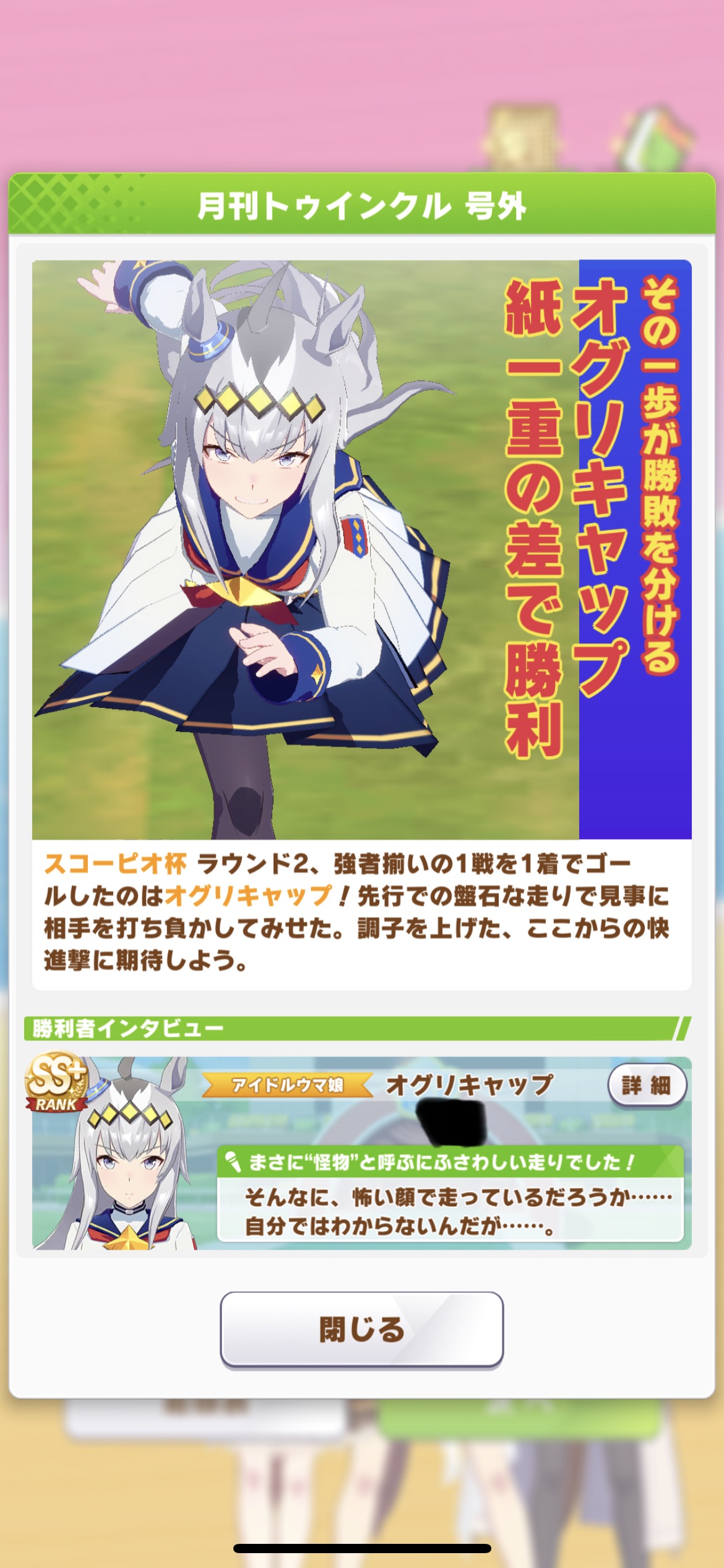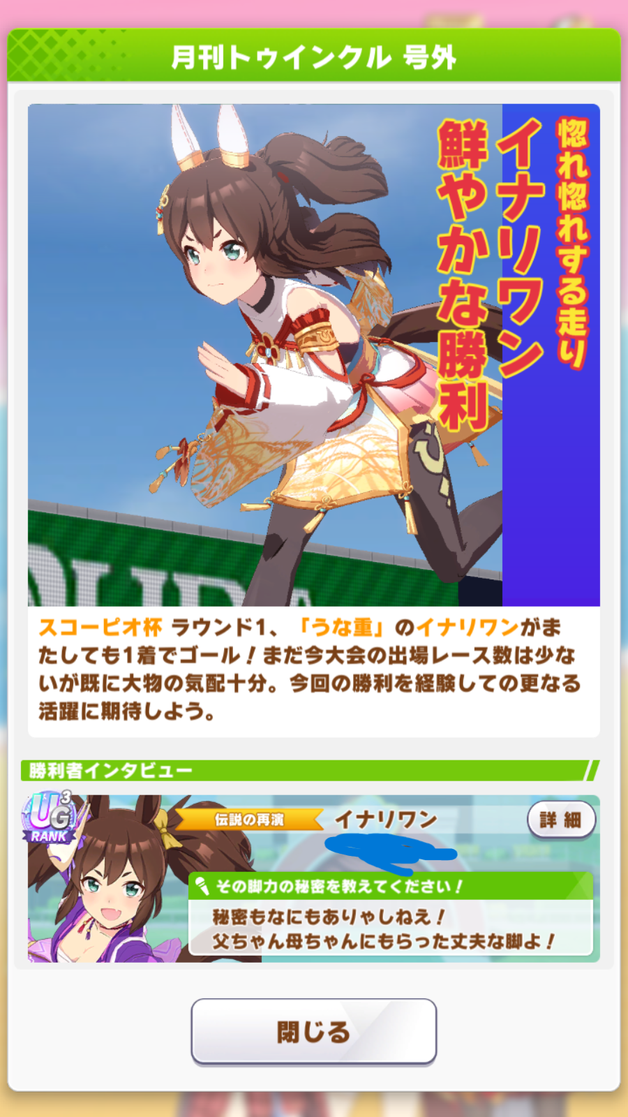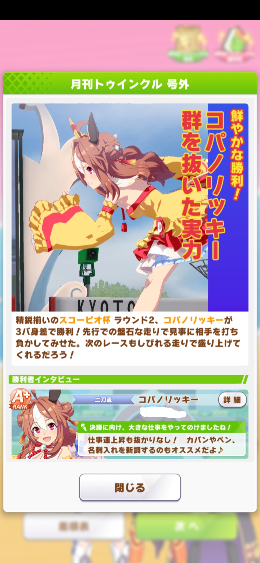 ネイチャ、クリオグリ相手によく勝ってくれた!