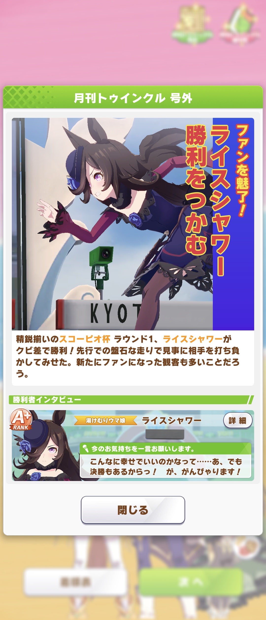 京都2200mの舞台でライスを勝たせる事が出来たので大満足しました