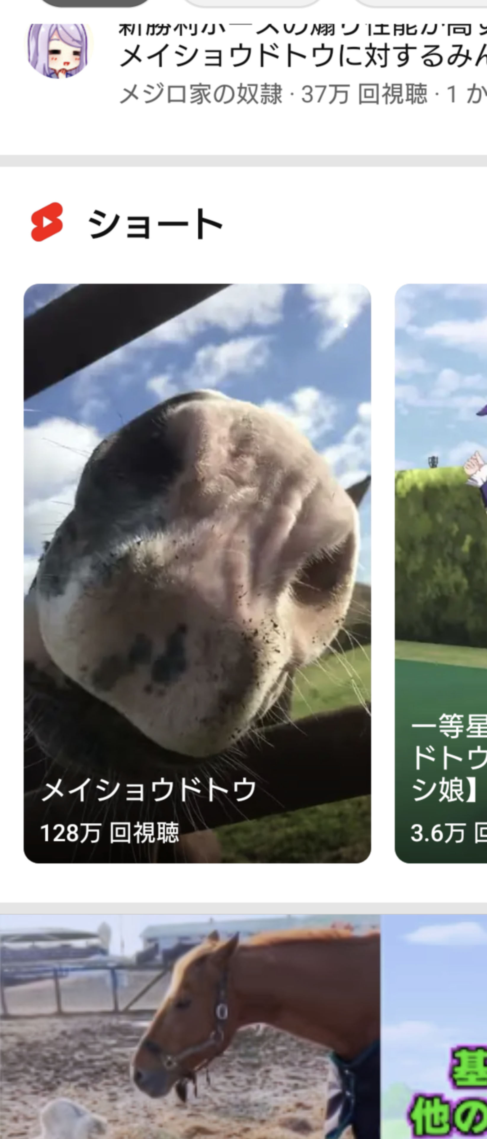 YouTubeでメイショウドトウで検索したらショート動画の一番最初に出てくるやつ好き