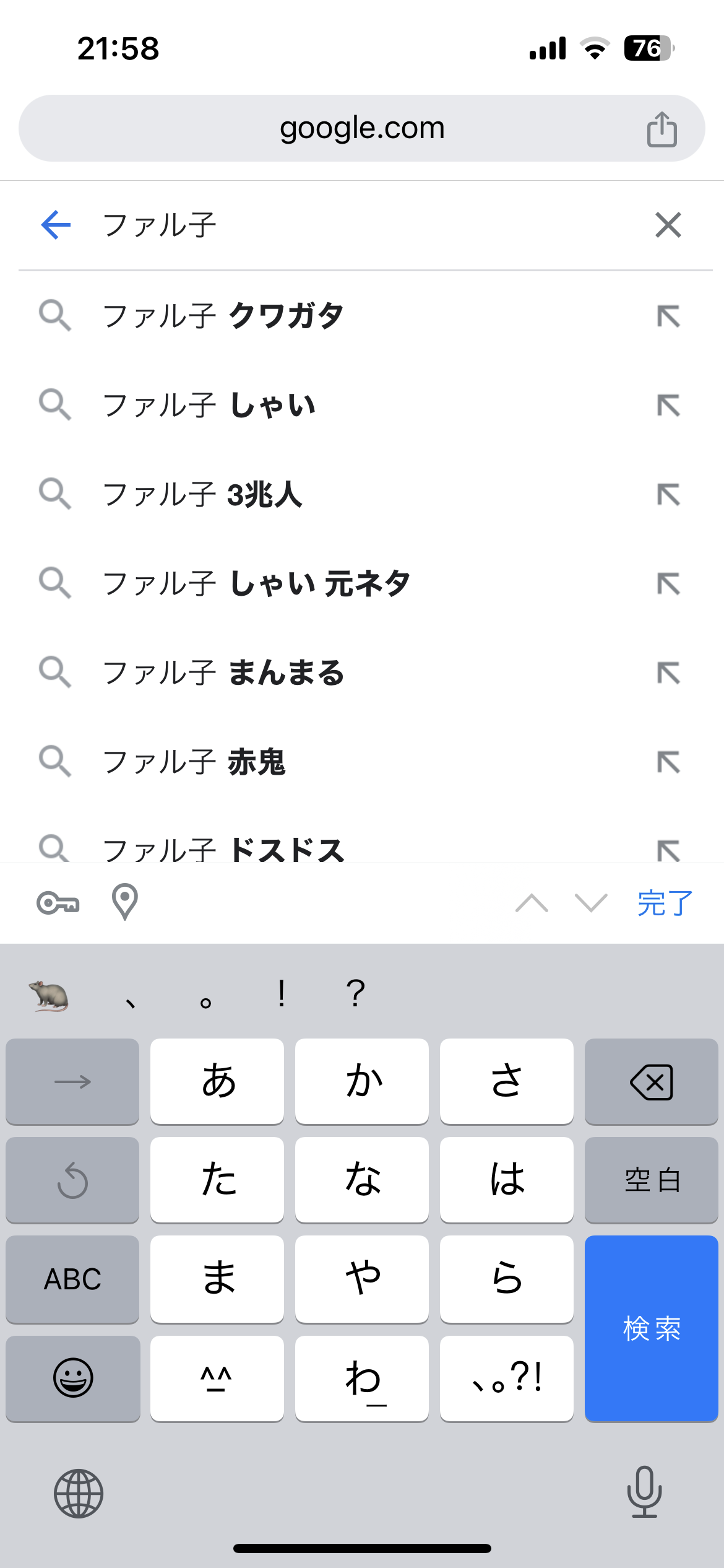 ひらがなで「たぬき」かな、予測の9段目くらいにはウマ娘がちょくちょく入ってる
