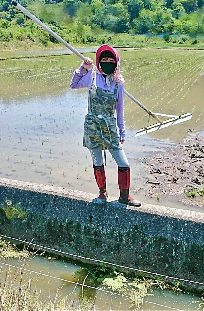 田んぼで決めポーズしてる写真が